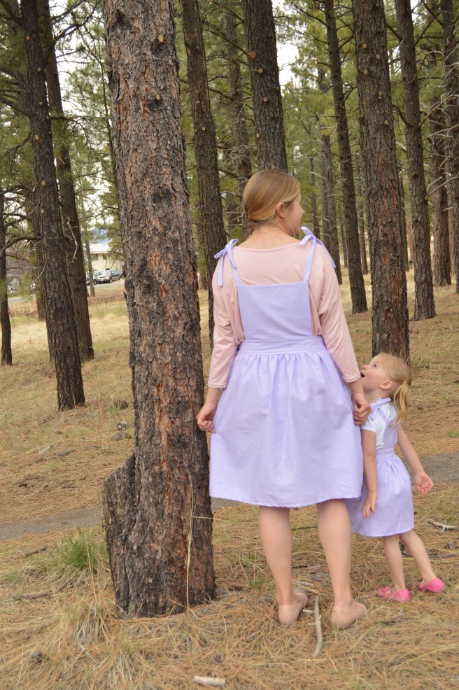 But because of the Fleur’s simplicity I knew that making mini versions for my gals would quick and pretty painless. So I asked them if they wanted some dresses and they enthusiastically said YES! I was going to make theirs out of a similar fabric but in pink, but they insisted they wanted the same lavender as mine, so I obliged.