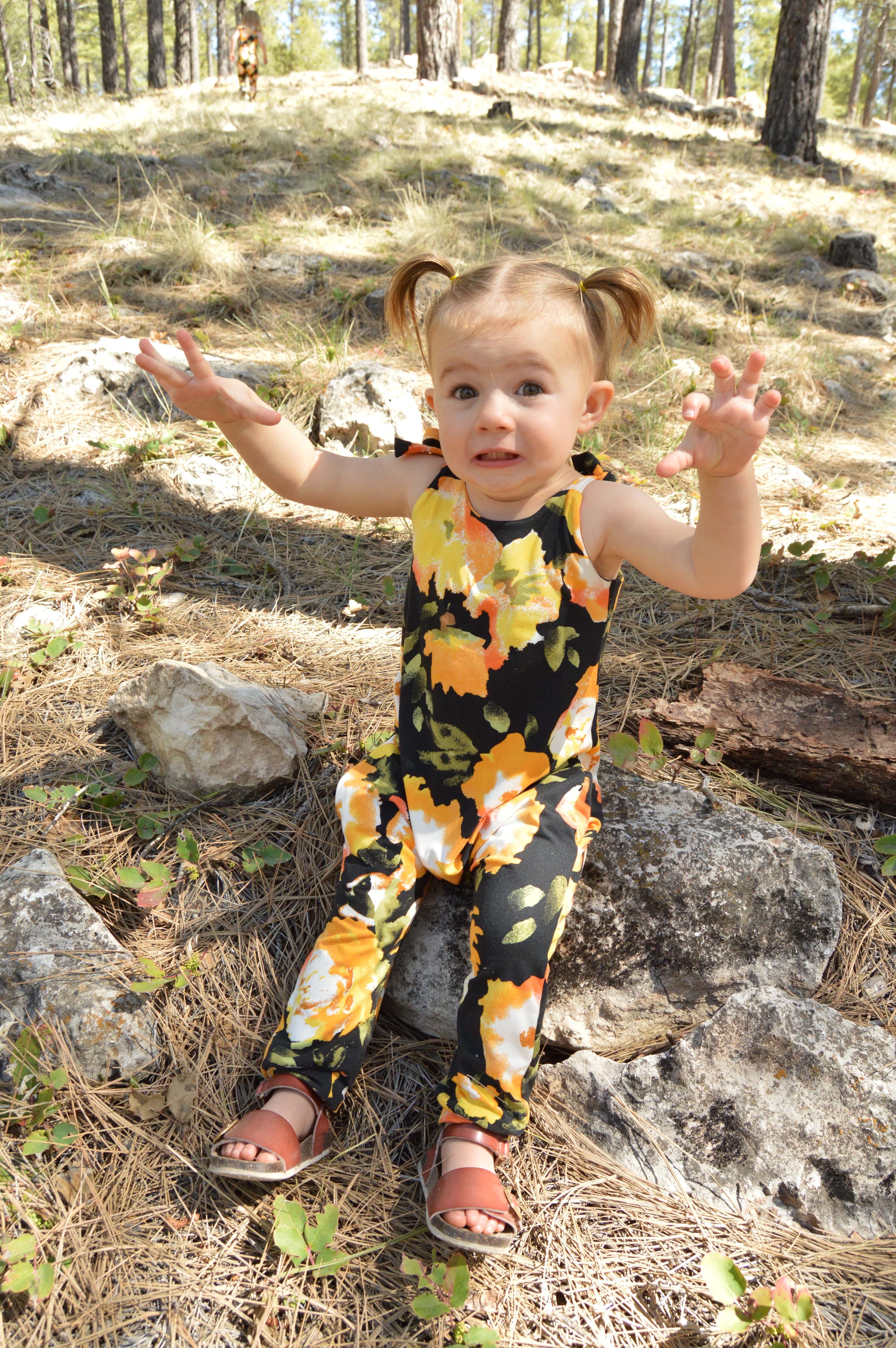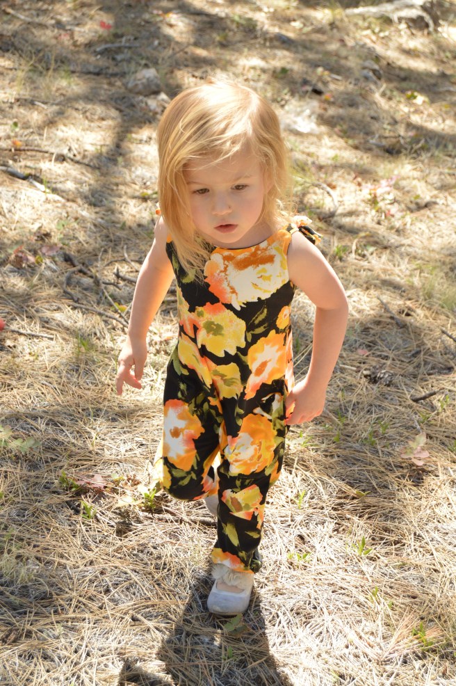 Anyhow, this was a very smooth-going and easy project. I plan on making a couple more as gifts for some friends who’ve had babies recently. The jumpsuit itself is kind of harem style which is cute and unique and I think it would look great in a lot of different prints.
