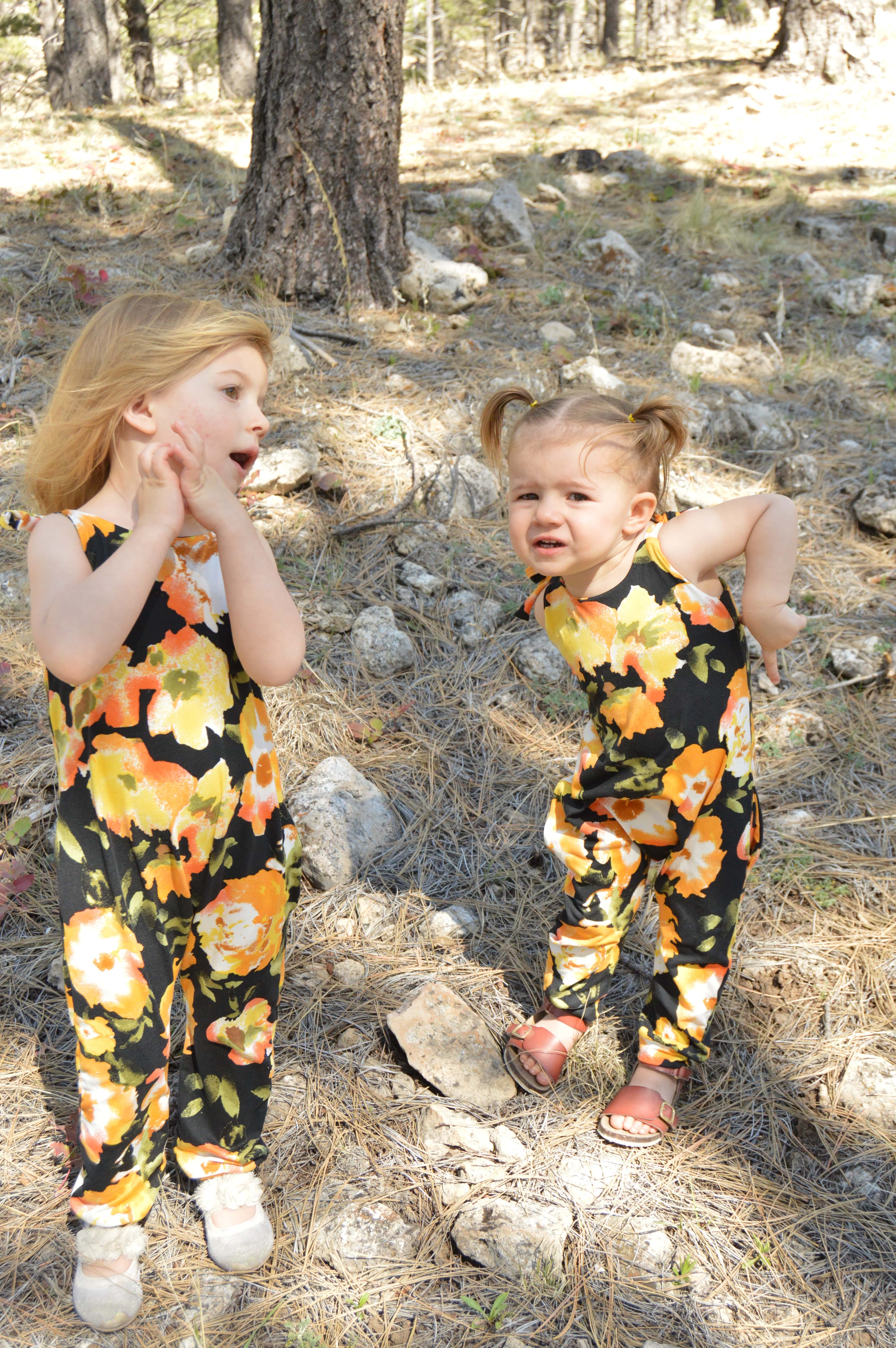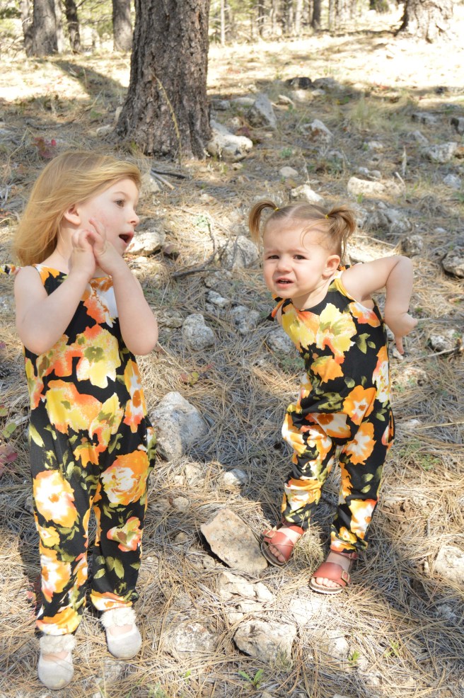 I actually made a total of 5 jumpsuits when I made these. I made 3 for my nieces and then made the ones for my girls, because they were a breeze to sew and because I had plenty of fabric left over. I don’t have a picture yet of all the girls wearing their jumpsuits together but maybe we’ll get one someday.