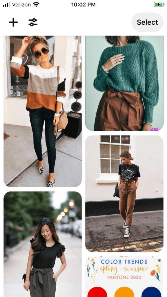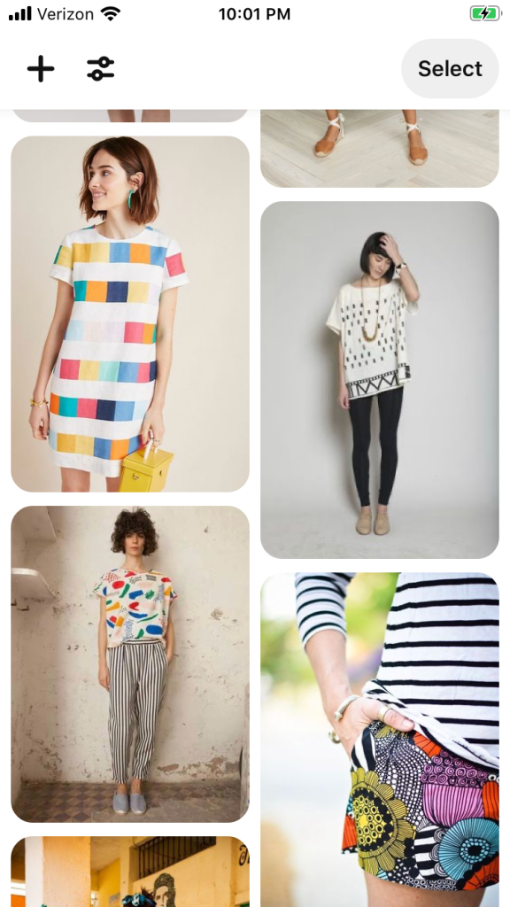 You can see that my pins have similar themes (i.e. oversized tops), but my tastes started skewing toward much more colorful clothing and bold prints. I have always loved color and (I believe) I used to dress much more colorfully. However, pregnancy and having kids definitely made my weight fluctuate and I think I didn’t want to draw any attention to that fact so I started sticking to more neutral colors. My current closet has a lot of gray and navy. But I definitely want to embrace more color.