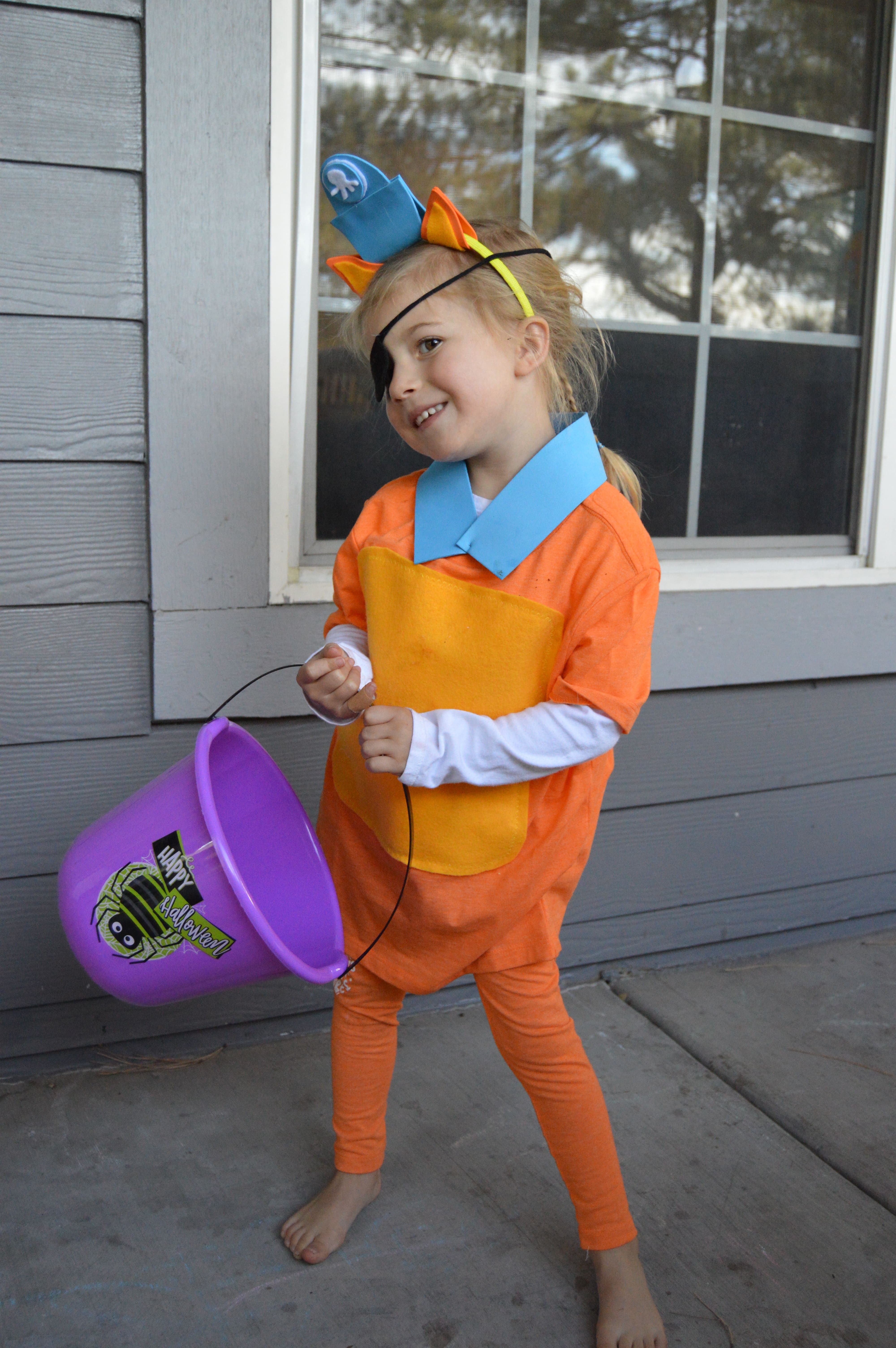 For her tummy, I just sewed on a piece of felt which corners I had rounded. For her hat, ears and tail, I used crafting foam and just drew up something similar to the hat Kwazii wears and glued it all onto a headband. Her costume was pretty easy to bust out, once I got all the materials I needed. I think the only frustrating thing about this costume is that it’s not likely to be worn again, but it was cheaper to make it than it would have been to buy (I think I spent about $13 for everything I needed). Plus I did a pretty loose stitch on the top so I could always take the felt off and use it as a regular shirt in the future.