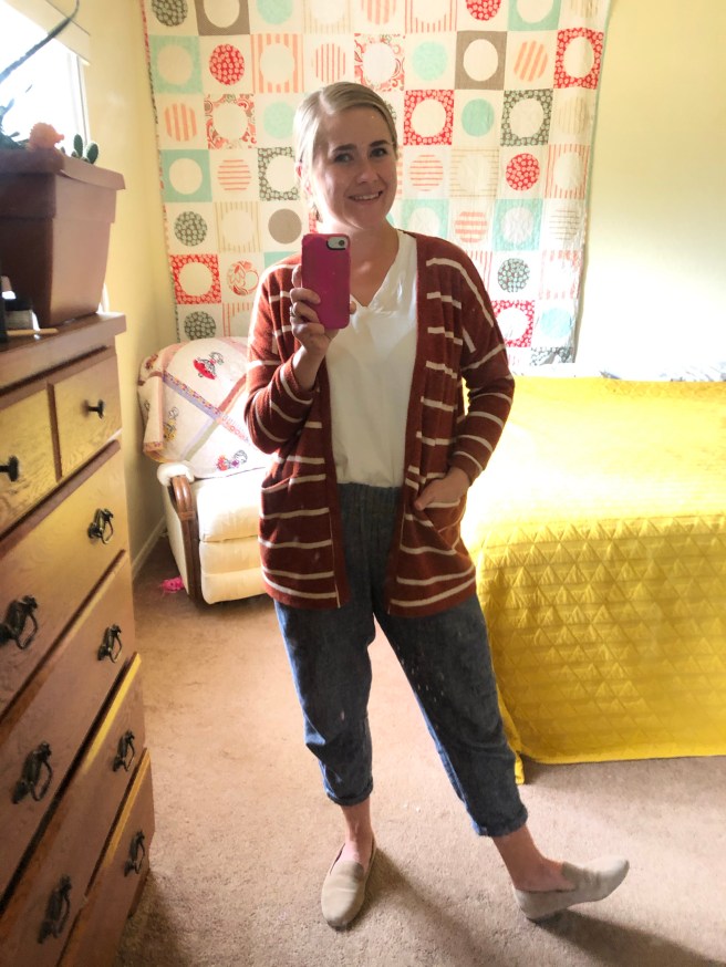 Day 2: Union St. Tee (v-neck), Driftless Cardigan, and Free Range Slacks