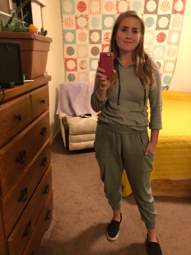 In the past, I’ve packed these pants up with my summer clothes, but I’ve still been vibing them and enjoying wearing them with sweaters and long sleeves. They are comfy and chill and I probably wear them once a week. Plus those pockets fit ALL THE THINGS.