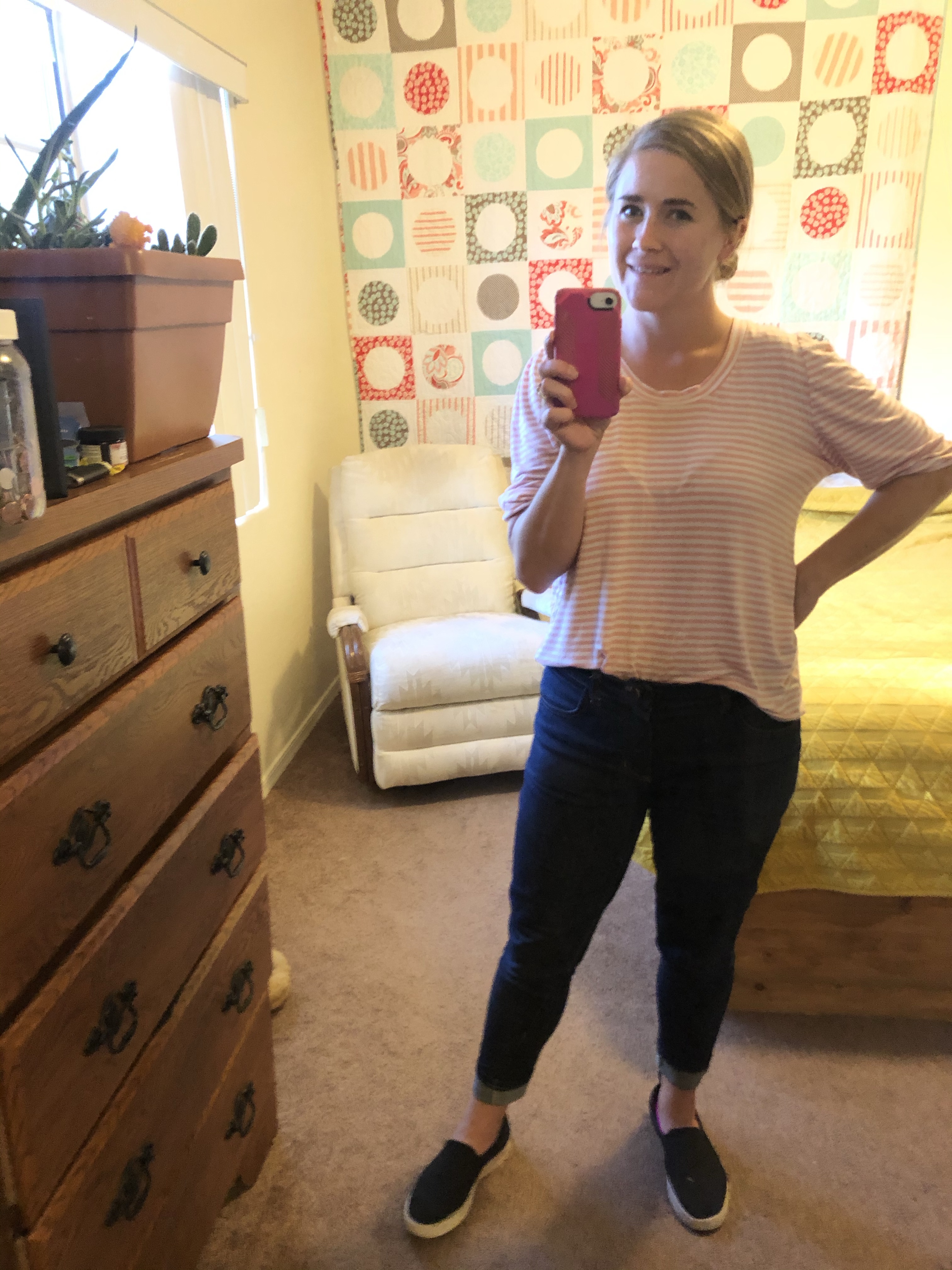 I’m not always wearing head to ankle handmade (I have to clarify because some ambitious people even make their own shoes!), but sometimes I am! The white tee is one of three Union St. v-necks that I own, all of which get worn pretty often. I’m wild about my Driftless and constantly wanting another (maybe a more neutral one)…or another seven. And I wear my Free Range Slacks regularly but, truthfully, I’m still quite on the fence as to whether I actually like them or not. They add variety to my sparse collection of bottoms, but are still a bit reminiscent of pajama pants. And here I will shamelessly brag about my shoes: I bought them for $20 at Nordstrom Rack Last Chance (it’s in Phoenix so if you’re in that area, have some extra time and love a good deal, go!). They’re Birdies and normally are $120. They are crazy comfy and I love mine 🙂