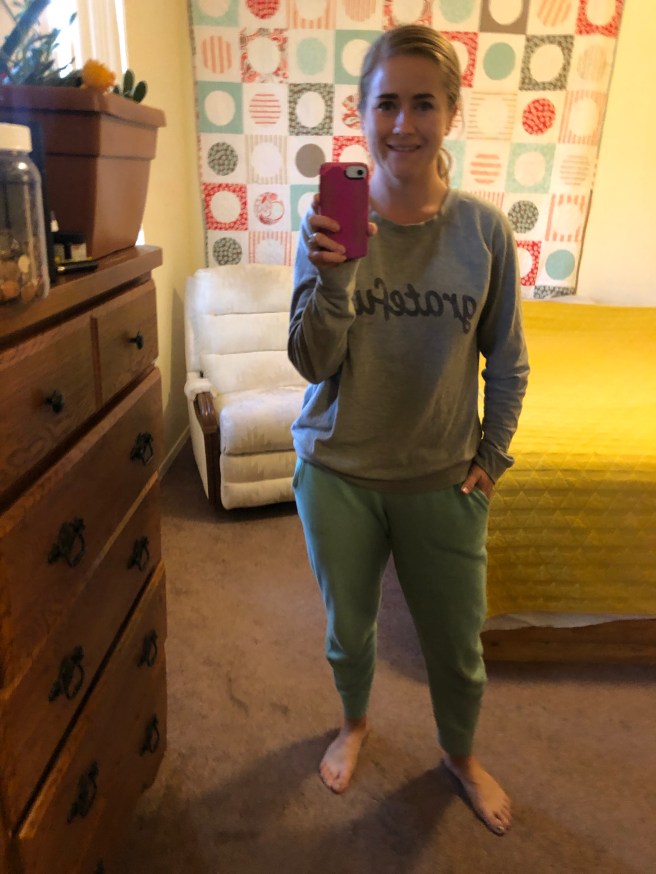 Loungewear Bonus: sweater from Target and Hudson Pants