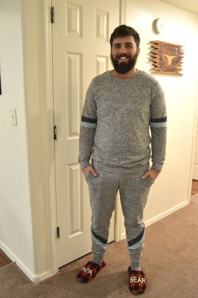 I’ll apologize now for the little number of photos I have to show you these jammies. Ben’s not wild about picture taking so I snap quickly and take what I can get!