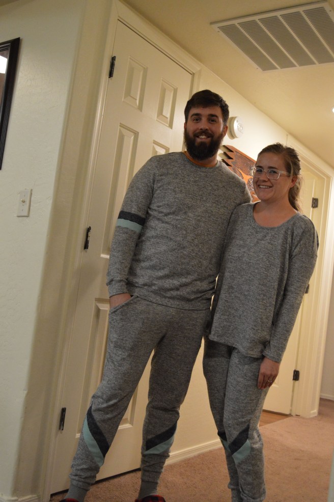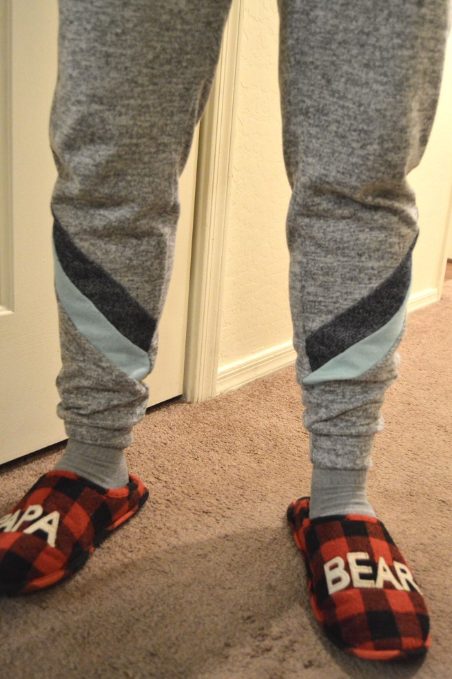These pajamas included a bit of a Christmas miracle: I really wanted to buy fabric in person so that I didn’t have to wait for fabric to ship. I wanted to get started on sewing as soon as possible. So I checked out fabric at the very few shops here in town that sell fabric and in the end I decided to just go back to Hobby Lobby and pick up the heathered gray fabric (which is like a Hacci sweater knit). When I got around to going to Hobby Lobby, I discovered that the very fabric I had in mind was on super sale, 80% off and just over 2 dollars a yard! Hooray! I got 6 and a half yards of it for around $15, and even after making our jammies I still have enough left over to make a cardigan or something. I was, and still am, so grateful for this little blessing!