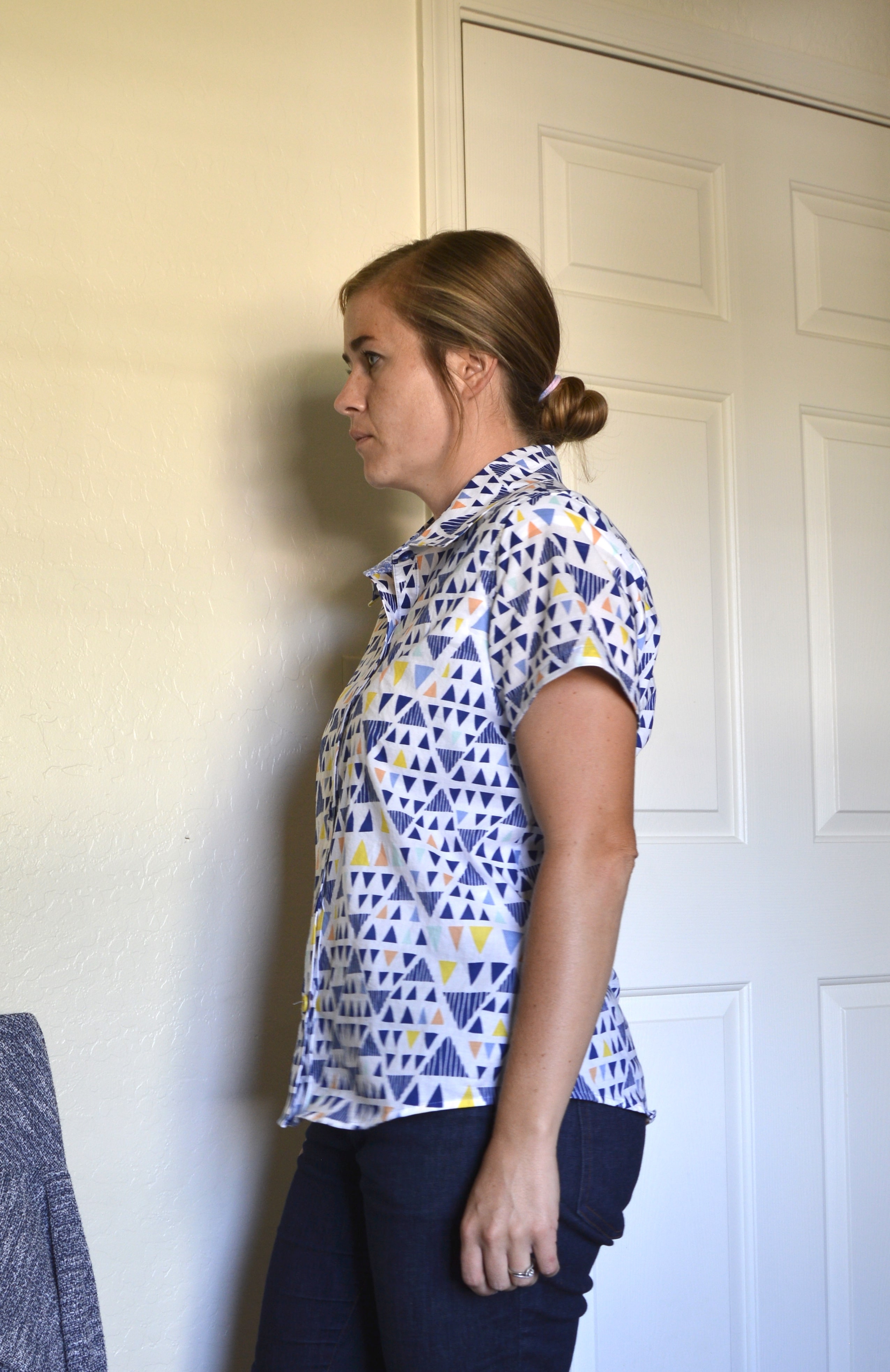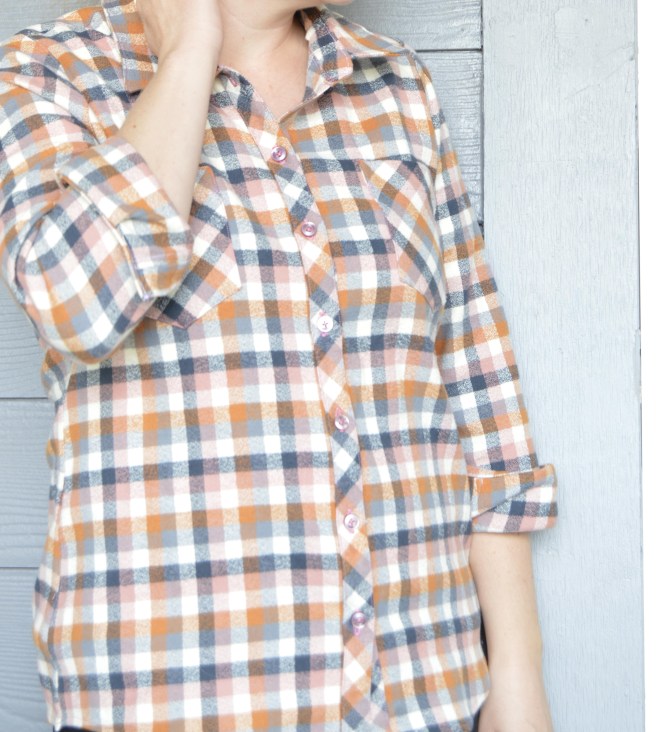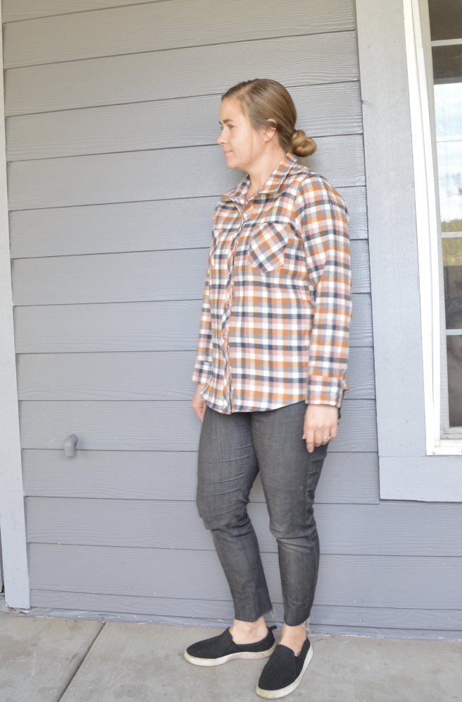 I always think it’s cool when patterns are kind of built to not use a serger (of course, I love my serger and also think it’s cool when patterns are built to be used with a serger. They each have their place). In any case, this pattern is made to be serger free! It gives instructions for how to do French seams on the insides, which I’m sure looks really nice. But I was so pleased with how the flat fell seams turned out in Ben’s shirt that I opted to do flat fell seams on my top too. There is plenty of seam allowance for any way you choose to finish your seams (and you can definitely still serge! I did on my muslin). I don’t have a picture of the insides, but they turned out really nice.