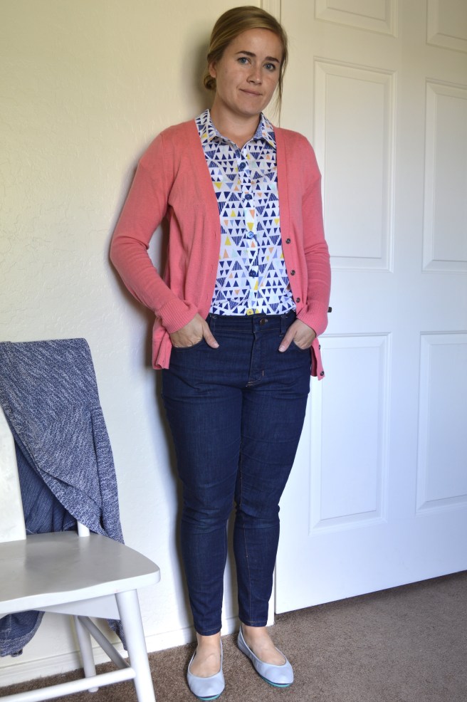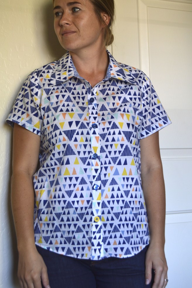 I was so excited about this fabric and thought I would love this shirt, but alas, I really didn’t. The print is fun and in the pictures I don’t hate it as much. But in real life it just felt so loud and obnoxious. And with the big collars I truly felt like I was in a bowling league or something (which is cool, just not the look I tend to go for).