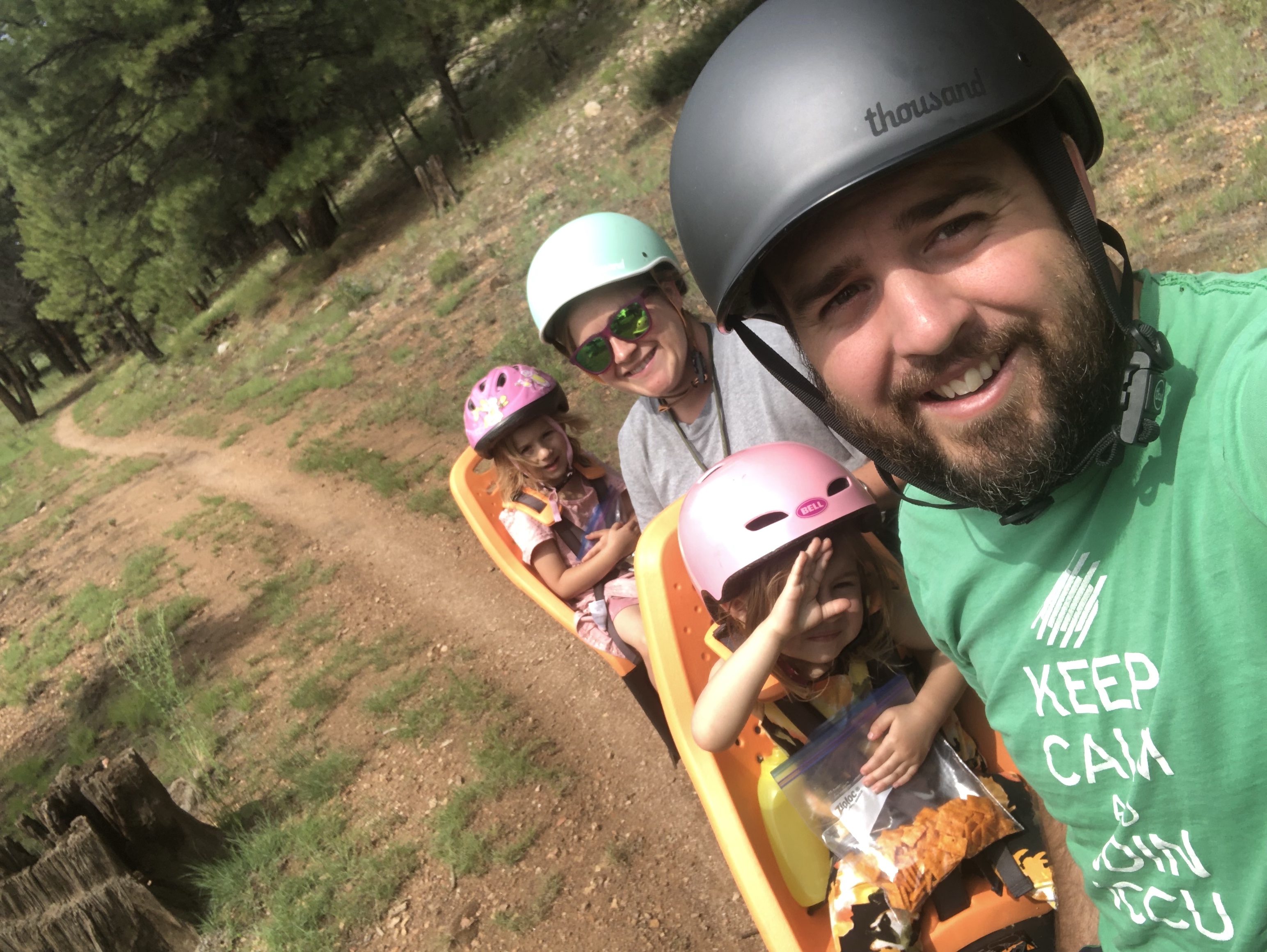 - One of my favorite, non-travely things we did this summer was go for bike rides. We did a lot of bike rides last summer but I was thinking we’d have to give them up this summer just because of my energy levels. We did do some bike rides with me on the mountain bike, but Ben decided to get another e-bike (this time a version that’s better for trails, a must have here). When the new bike got here sometime in July it changed our bike riding lifestyle. Now both Ben and I can be on an e-bike and we can each carry a child. We’ve done a handful of 20+ mile rides, plus lots of shorter ones and had so much fun with it. We live in an incredibly bike-friendly place; there are trails everywhere and we’ve tried to take full advantage. It’s been fun AND it’s been a really great and low-key way for me to exercise.