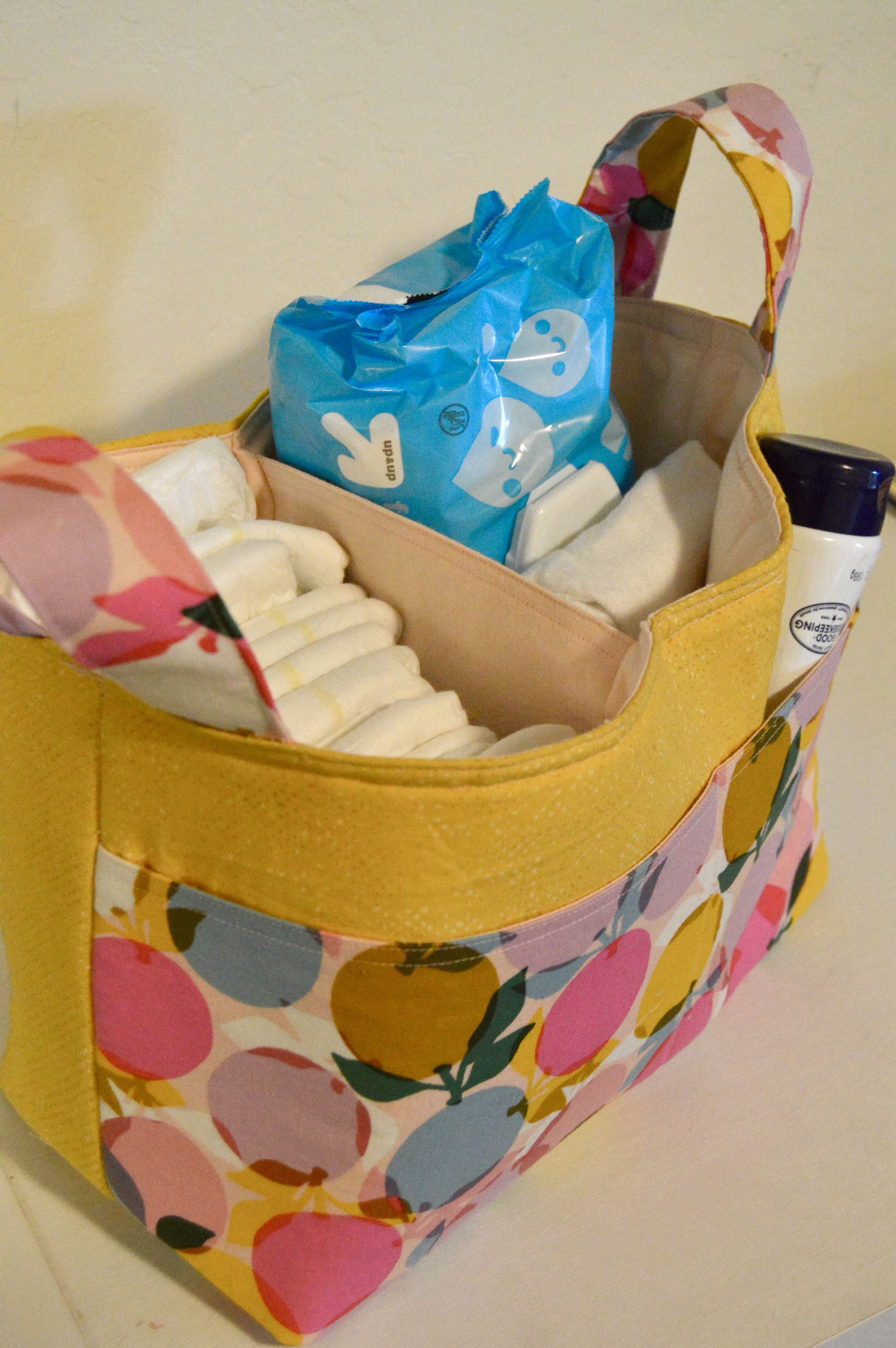 I bought this pattern (the Divided Basket from Noodle Head) a few months ago but only within the last week or two did I get around to sewing it. When I saw the pattern I knew it would be perfect for holding diaper changing stuff all in one place. I’ve never done a project like this and I’ve also never tried anything from Noodle Head, although she has some seriously cute bag/backpack patterns that I’ll have to try at some point.