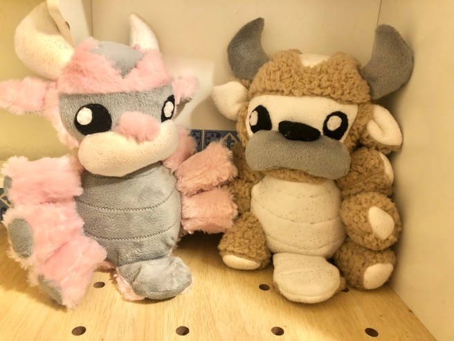 Well, Ben was about a decade late to the party, but he’s become a fan of The Last Airbender. I haven’t seen all the episodes but it’s a really good show! The girls actually like watching it too. Anyway, Ben said he wanted a giant Appa plush and asked if I could make one. He found this pattern from Choly Knight that is FREE and includes 3 different sizes. The largest size isn’t as big as Ben was dreaming, so we knew we were going to have to size up. However, I was NOT about to take on making a jumbo plush when I’d never made any sized plush before. So I decided to practice with a couple small Appas that the girls could have. I bought just 1/4 yd each of the pink and the brown fabric, because just using my stash wasn’t going to cut it. I made the medium size pattern (the finished plush is about as long as my forearm) and was surprised at how doable it was. The pattern and instructions were very clear and easy to follow. It took a bit more time and effort, there’s a decent amount of hand sewing involved, and these little guys turned out a little big wonky (due entirely to my own skill set). BUT I think they are pretty cute all in all and it made me think that I can handle a jumbo sized one. That one isn’t in the works quite yet. I need to find a place that will print the pattern on a large enough scale and I need to buy fabric, but I’ll be sure to post about it when it’s finished. It’s fun to be trying something outside my comfort zone.