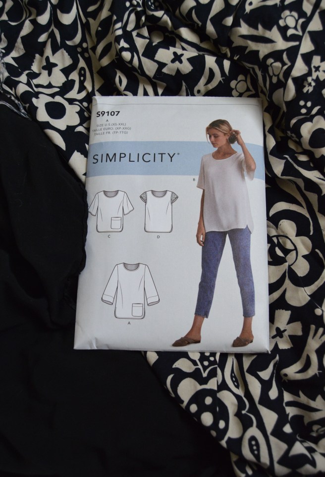 I love a good flowy shirt any old time, but especially after having a baby. So here’s to hoping this Simplicity pattern turns out. In any case, I’ll be able to use some stash fabric for this make.The cream and black fabric is a Cotton+Steel rayon I bought from fabric.com over a year ago (they have it in red, but I couldn’t find it in black anymore). And the solid black rayon is from Style Maker Fabric.