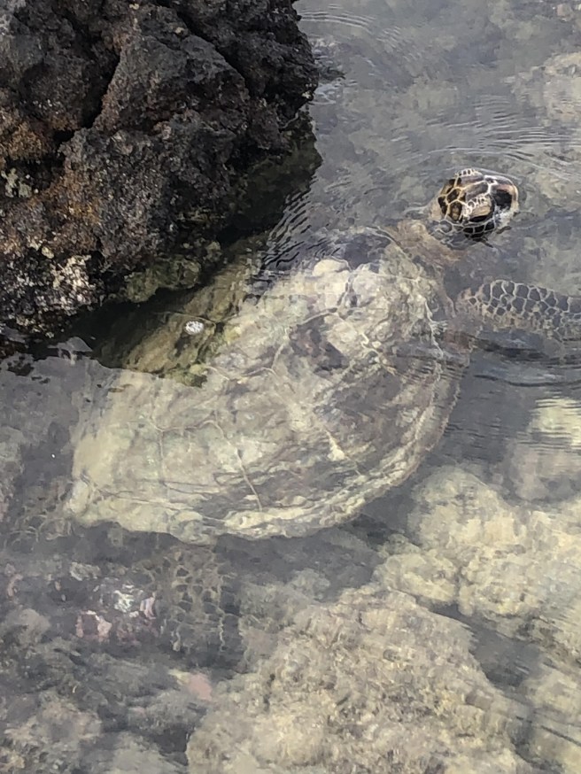 Two Step (aka: Honaunau Bay): The spot was amazing for snorkeling! It was highly recommended by everyone we talked to and it did not disappoint in the least! There’s not a parking lot here (although we parked in a church-I think-parking lot for $5) so we were told to get there early. There’s zero sand but there were some little pools of water separate from the ocean that the girls had a blast playing in. It’s called Two Step because you basically take two steps and you’re probably in water that’s 10 feet deep or more with tons of marine life just going about business around you. It is unreal! We saw SO many things here: all sorts of different types of fish, urchins, coral and there was even a sea turtle bathing in one of the pools! Getting into the water was slightly terrifying partly because there was no easing into it (although a little ways to the left you can snorkel in about 2-3 foot deep water and still see quite a bit) and partly because there were urchins everywhere! I was so nervous I was accidentally going to sit or step on one getting in and out of the water. We only went to the spot once but we all loved it and it was worth the longer drive!