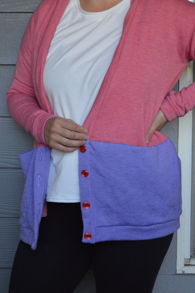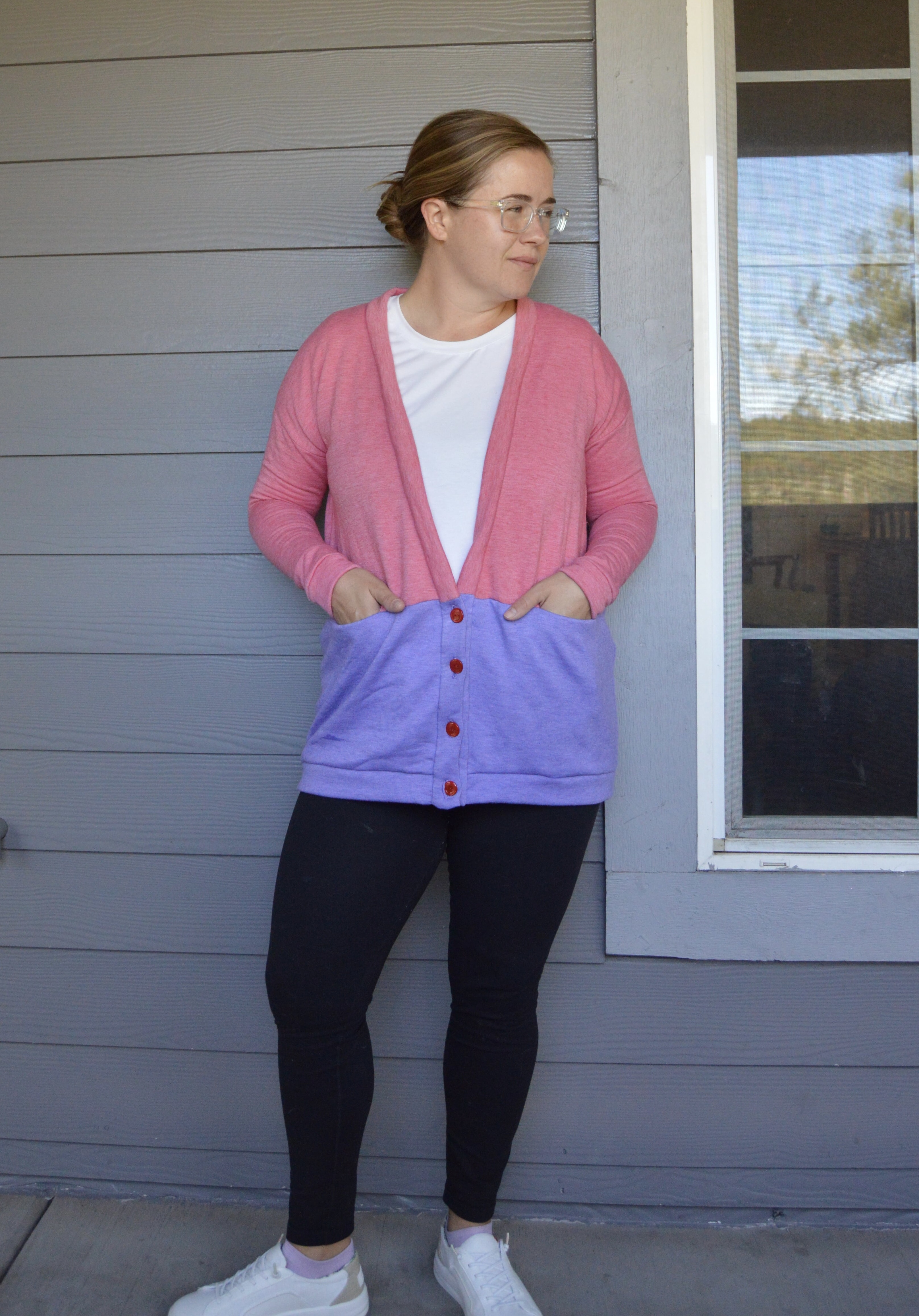 Sewing clothes, as fun as it is, is always at least a little bit of a gamble. Even if it’s something you’ve sewn before, you might get different results if you’re using a different fabric or different technique or even if your body has changed a bit. Typically, at this point in my sewing game, my makes turn out well enough that I can usually wear it even if it’s not a total success, but this works out best if I choose to employ my brain during the making process. Apparently my brain was elsewhere while I made this color blocked Driftless cardigan because I seemed intent on making every mistake perceivable, sometimes twice!
