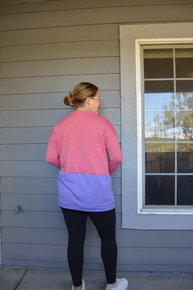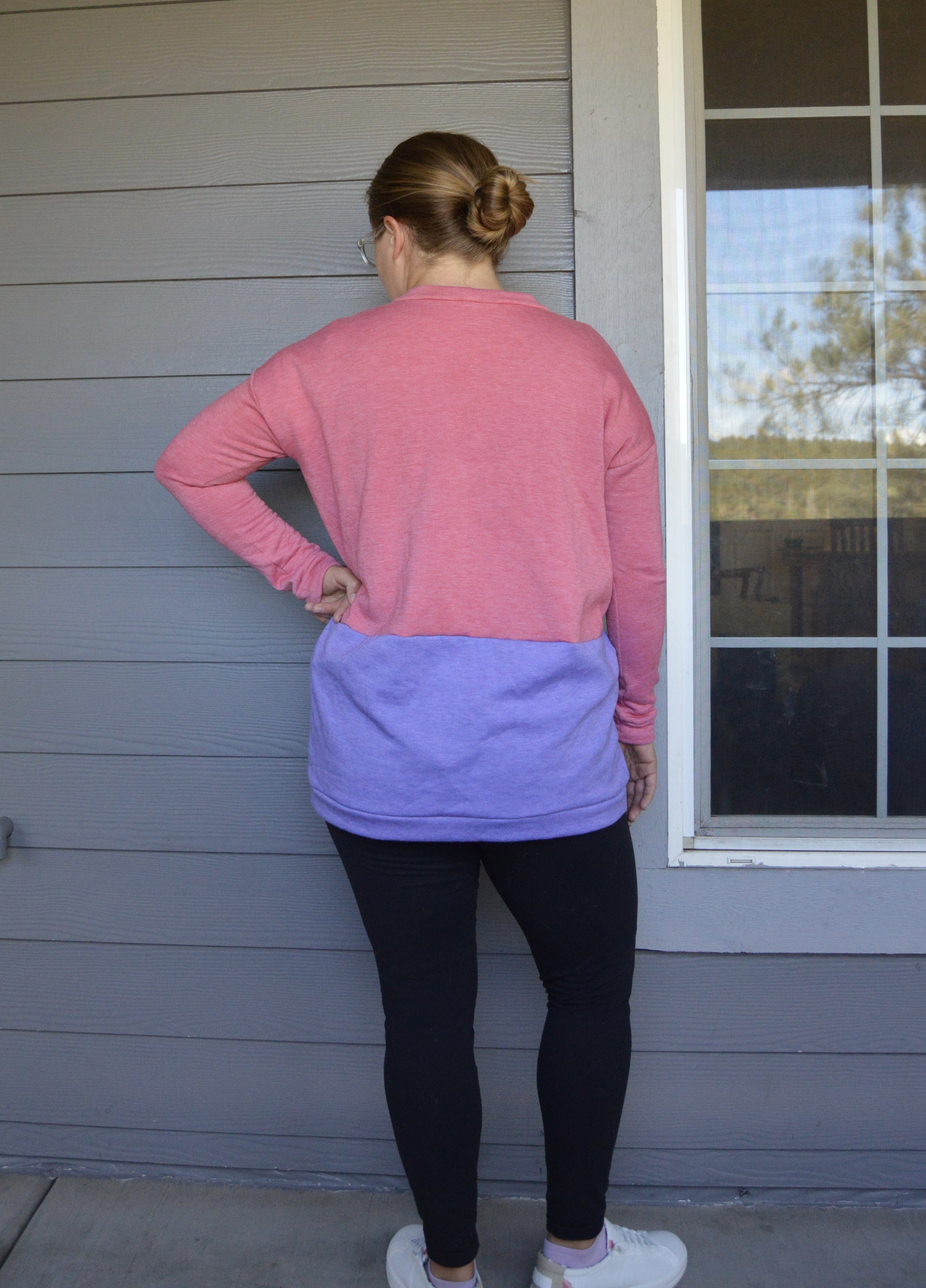 Probably close to two years ago, I saw a color blocked sherpa pullover in the best color combination. The colors were bright red-orange and grape purple. It was a match made in heaven and although I didn’t buy the pullover, I couldn’t get the color combo out of my head. In fact, I started seeing it all over on our walks. I knew I wanted to make something using the same colors and a Driftless cardigan came to mind because the pattern is-not technically but-basically drafted for color blocking. It would be super easy if only I could find the right colors.