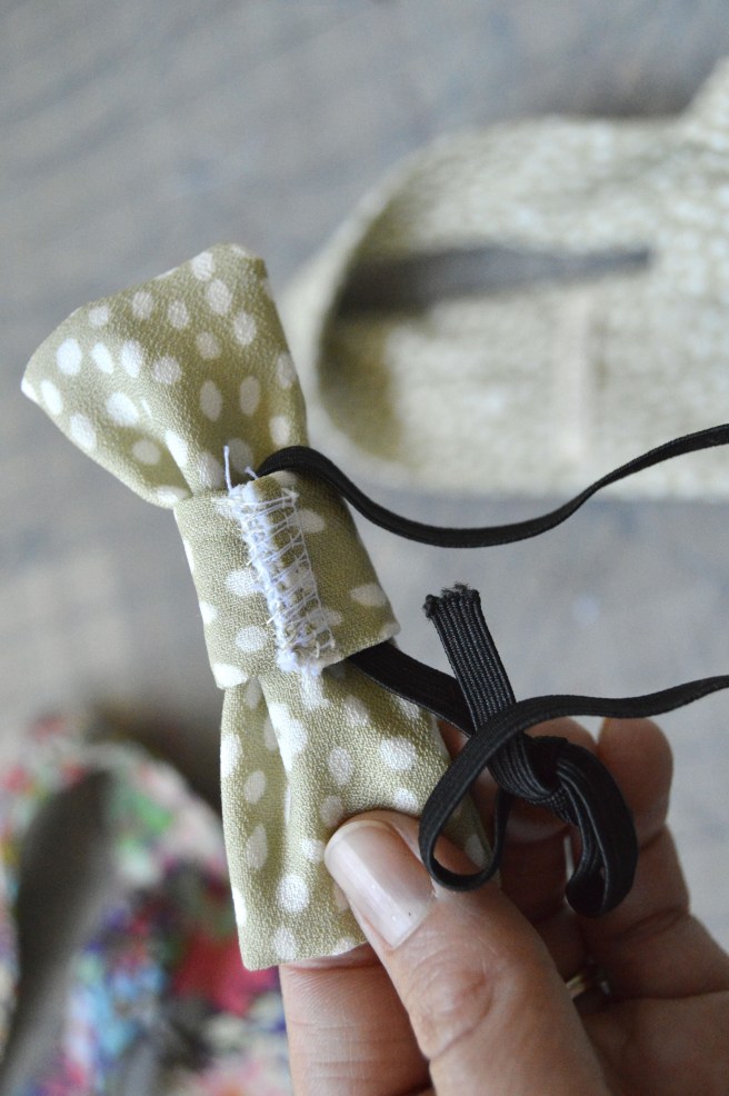 This was the first year Ben got to have a twinning buddy! I contemplated making Owen a few different things but then just decided to stick with a little bow tie (mostly because I was running out of time). I really quickly whipped this little bow tie out just by cutting a rectangle of fabric that I sewed together (it did require some hand sewing) and then did similar with the “knot” in the middle. The ties were the last thing I made and they were being made after kids were in bed on Saturday before Easter so I was just kind of feverishly working and hoping I’d get it done. I may have been able to come up with a better way to adhere it to Owen’s neck, but what I came up with was to just slip a piece of elastic (I only had black on hand) through the back of the knot and tie that onto Owen’s neck.
