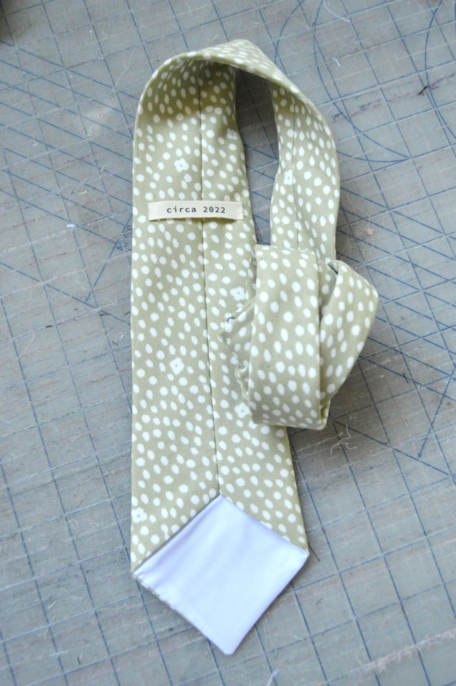 In the tutorial where the pattern came from, the tie fabric is actually upholstery fabric but it makes for a lovely tie. And one that doesn’t need interfaced. So interfacing isn’t always the answer. But sometimes it is.