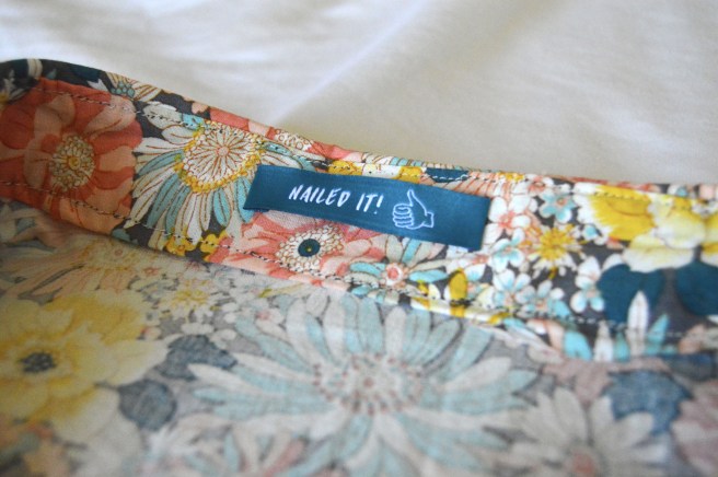 I did think ahead and attached the tag to just the neckband facing! Normally I don’t think about tags until the very end so I glad I caught this in time! I don’t know why but adding tags to my clothes makes me so happy, maybe even a little bit giddy. I love it. This “nailed it!” tag is from the KATM’s advent calendar last year. It was a gift I loved so much that I ordered it this year for Ben to give to me again ;).