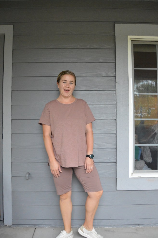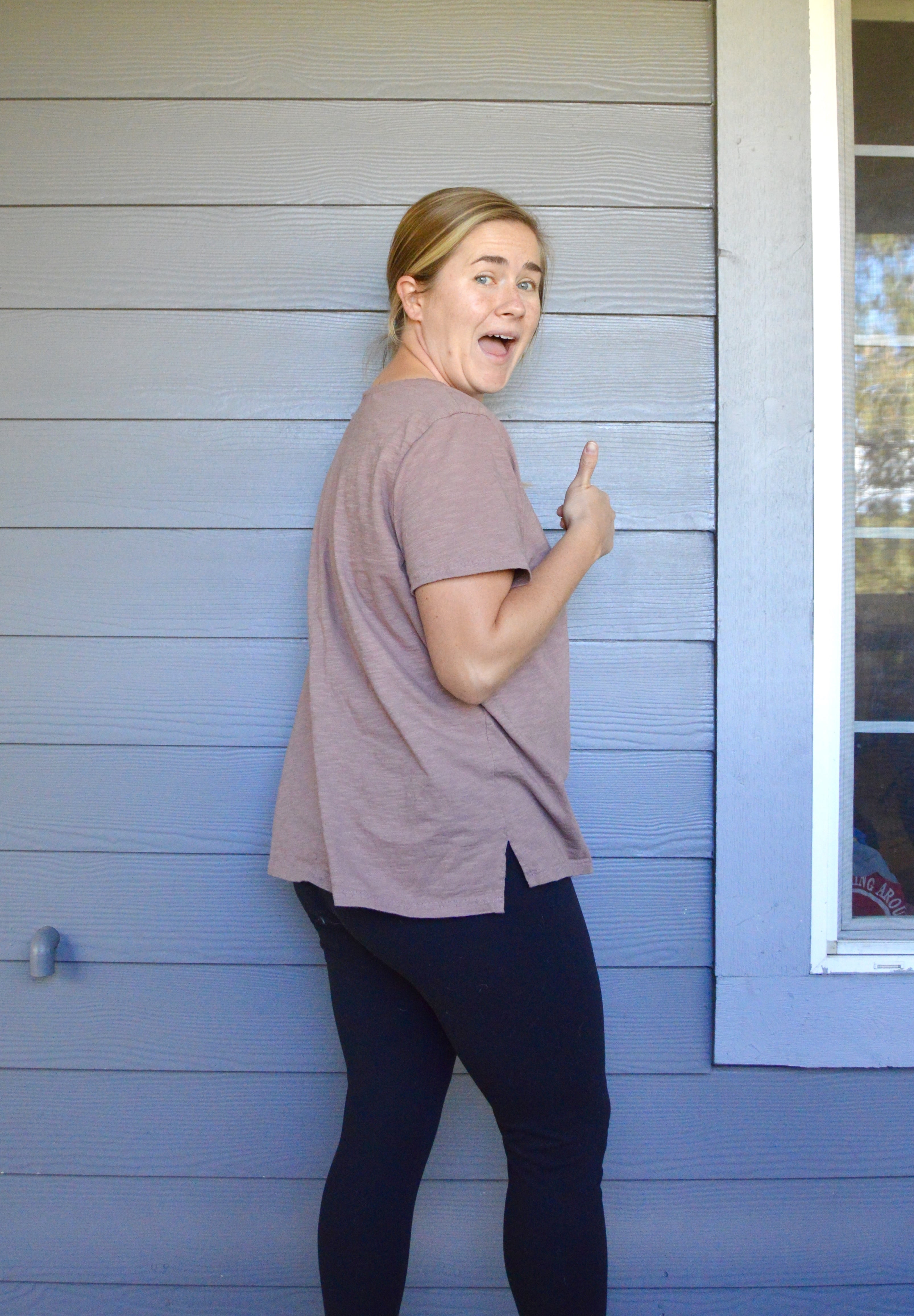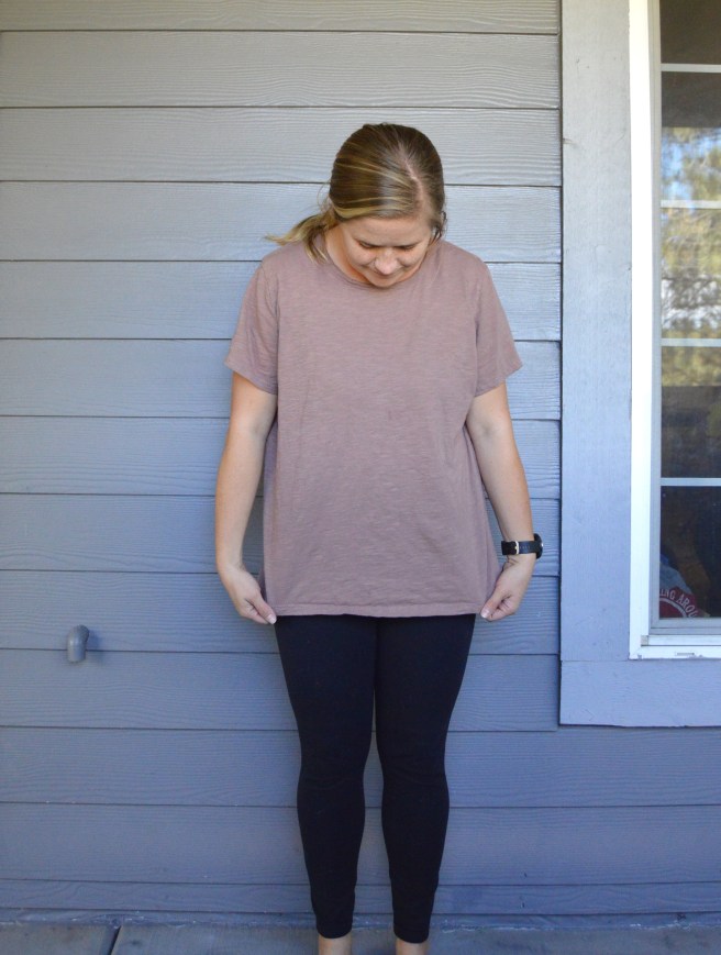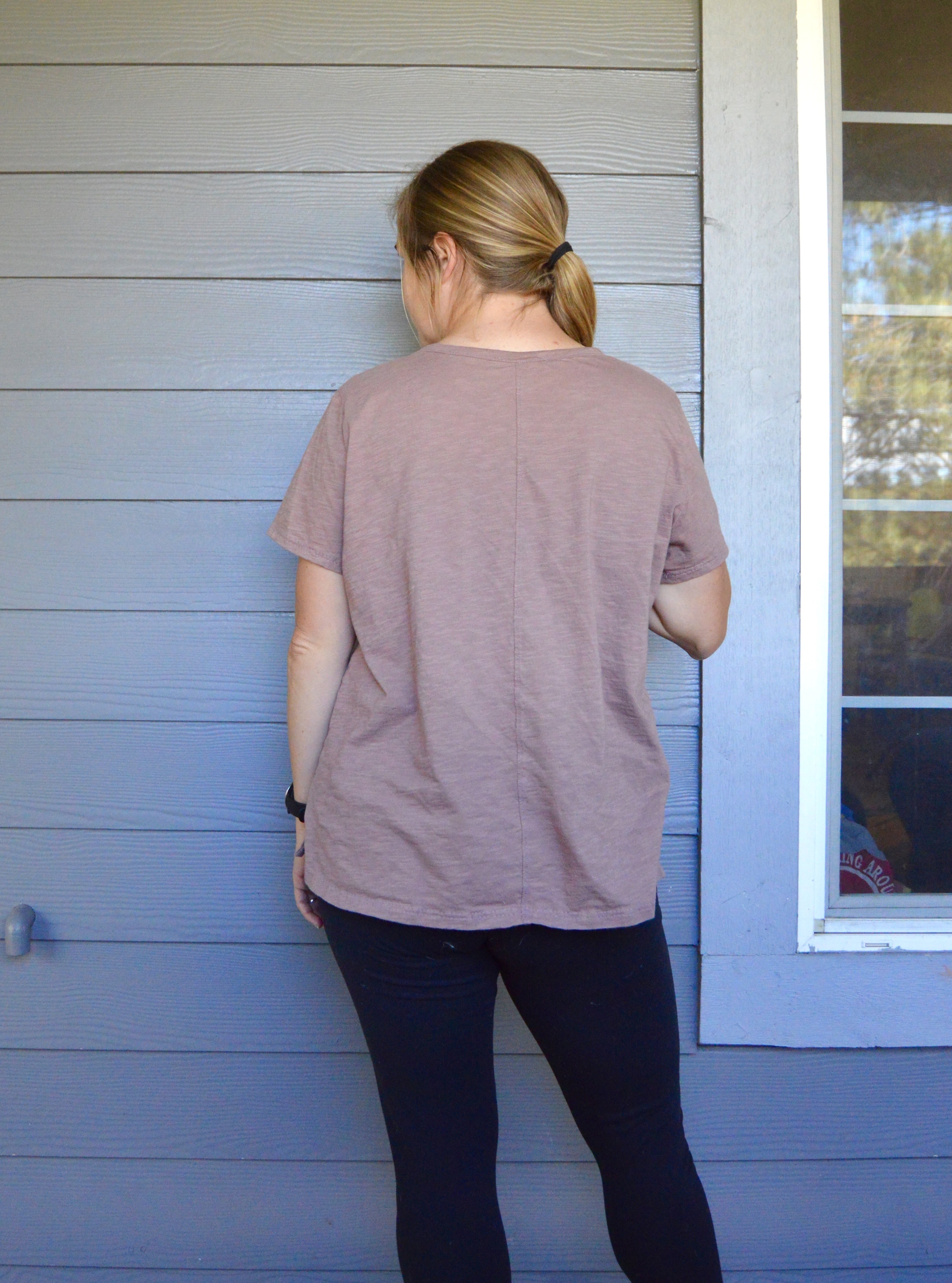 And actually, just funny to note, it’s about the same color as the leggings I made awhile ago so an accidental set was born and I will take it! I talked at length about the color in my leggings post but finally I just asked my husband what he’d call the color and he said, “dusty purple.” I’d say that’s accurate.