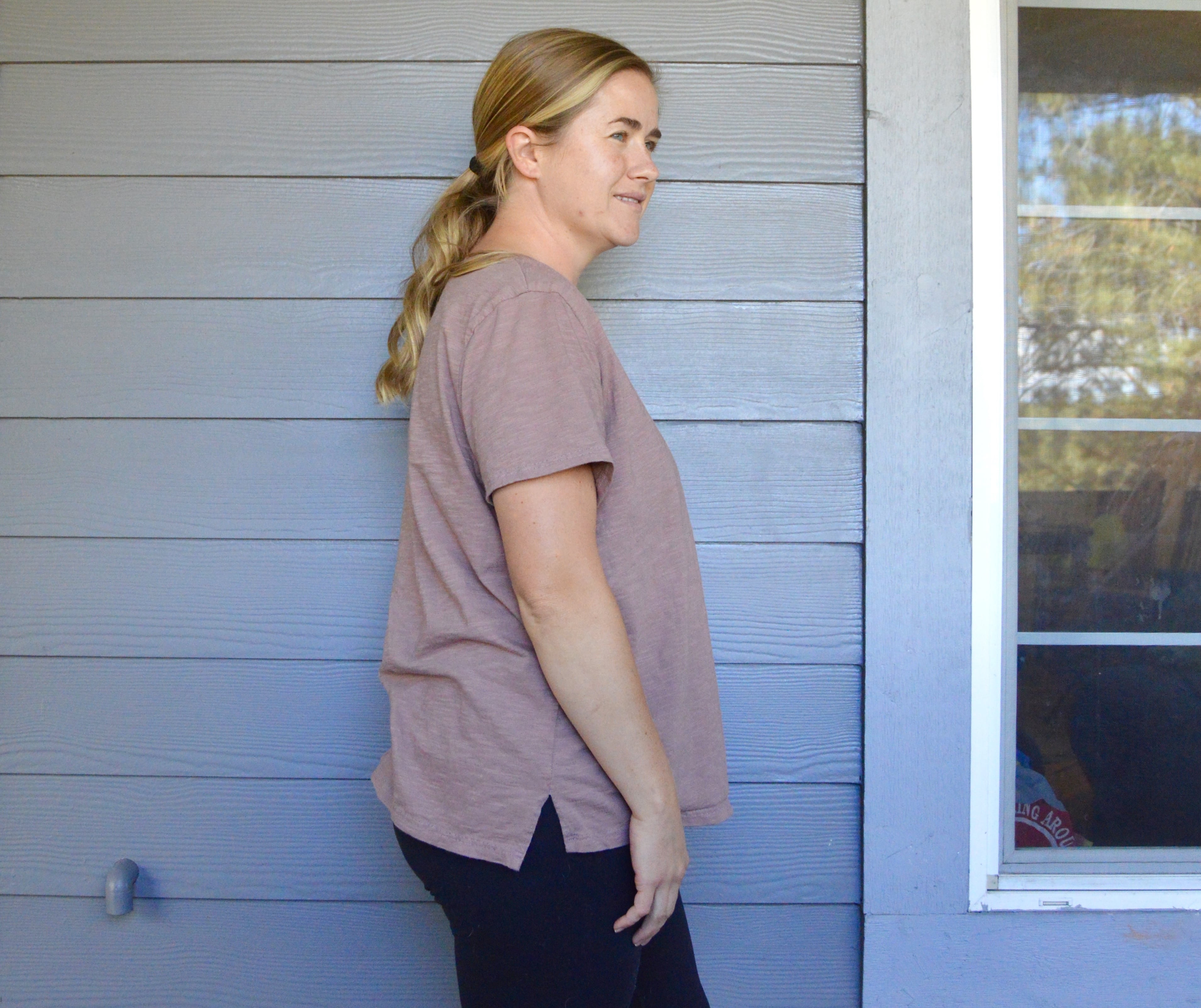 When you are rubbing off a tee, there are bound to be some issues, which I think is why I set my expectations so low. Because I don’t unpick the whole tee shirt, I know there might be places where the tee isn’t laying as flat as it should, or where I mistrace something. I don’t have any curve tools to double check my work. Plus the first time you make any pattern, even ones that have been professionally drafted, there might be places that need tweaked. And, in my case, the original tee was far past its prime and may very well have been stretched out or warped. But with every step I took with sewing, the more impressed I got. I got excited that I might actually have something great going on with my traced pattern. So I tried to be careful and mindful and in the end it really did turn out great!