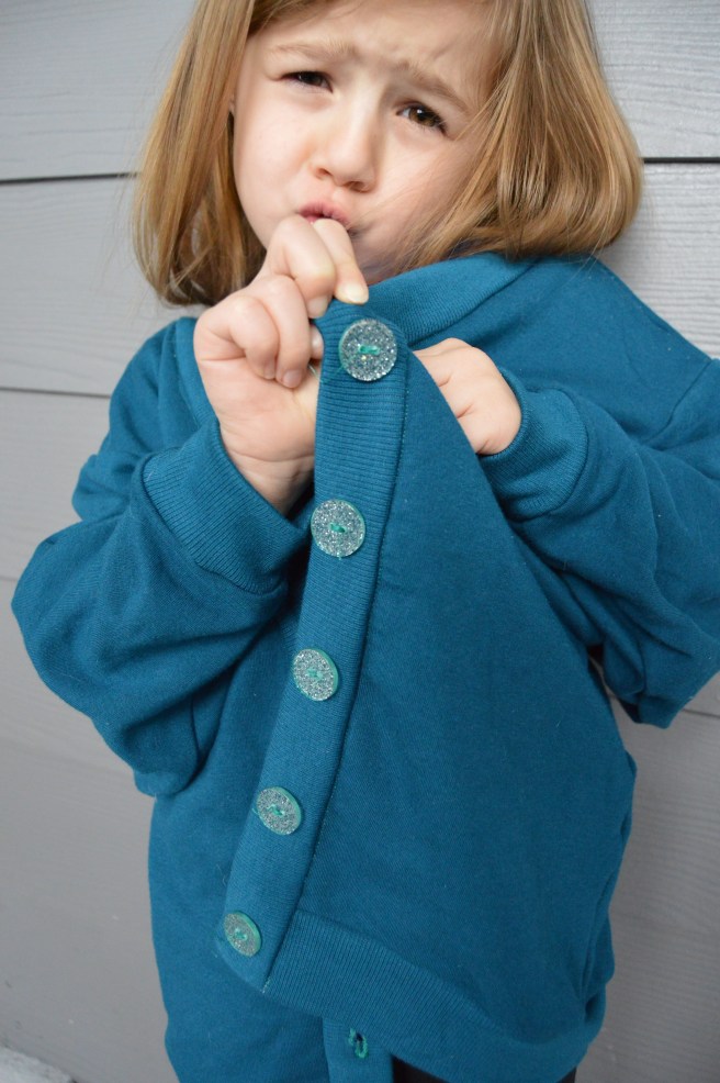 Fabric/notions: Fabrics are bamboo and cotton stretch fleece and coordinating ribbing from Blackbird Fabrics/buttons are from Hobby Lobby
