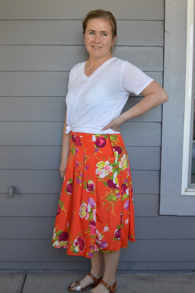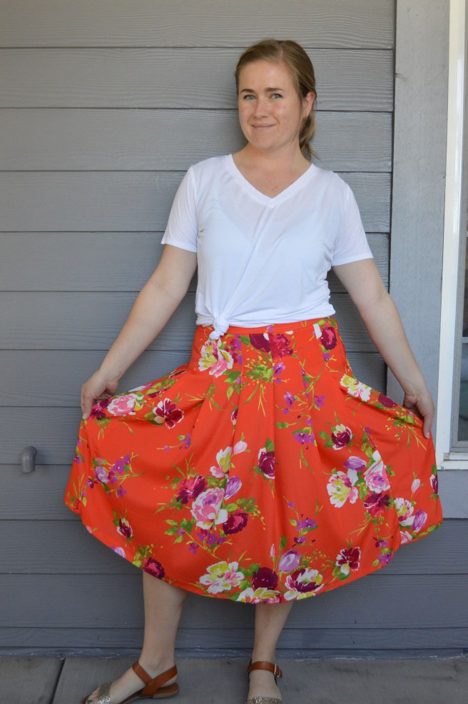 Anyway, in the end I still love the fabric but I’m just not sure this was the best way to show it off. As for now, I’ve hung the skirt in my closet. As I mentioned, if I style it as I did in these photos, I can wear it while hiding a lot of it’s most glaring issues. So my plan is to see if I ever reach for it once it gets a little warmer (the fabric is a bit too lightweight for the weather we’ve been having). If I do and I enjoy wearing it, I will tear into the waistband at least to fix the sway back issues (which shouldn’t require too much fuss). And if I don’t reach for it and/or don’t enjoy wearing it then I will also tear into the waistband but this time to dismantle it and turn it into something else. There’s not a ton of fabric to work with (I have very few scraps) but I’m sure I could think of something that would work.