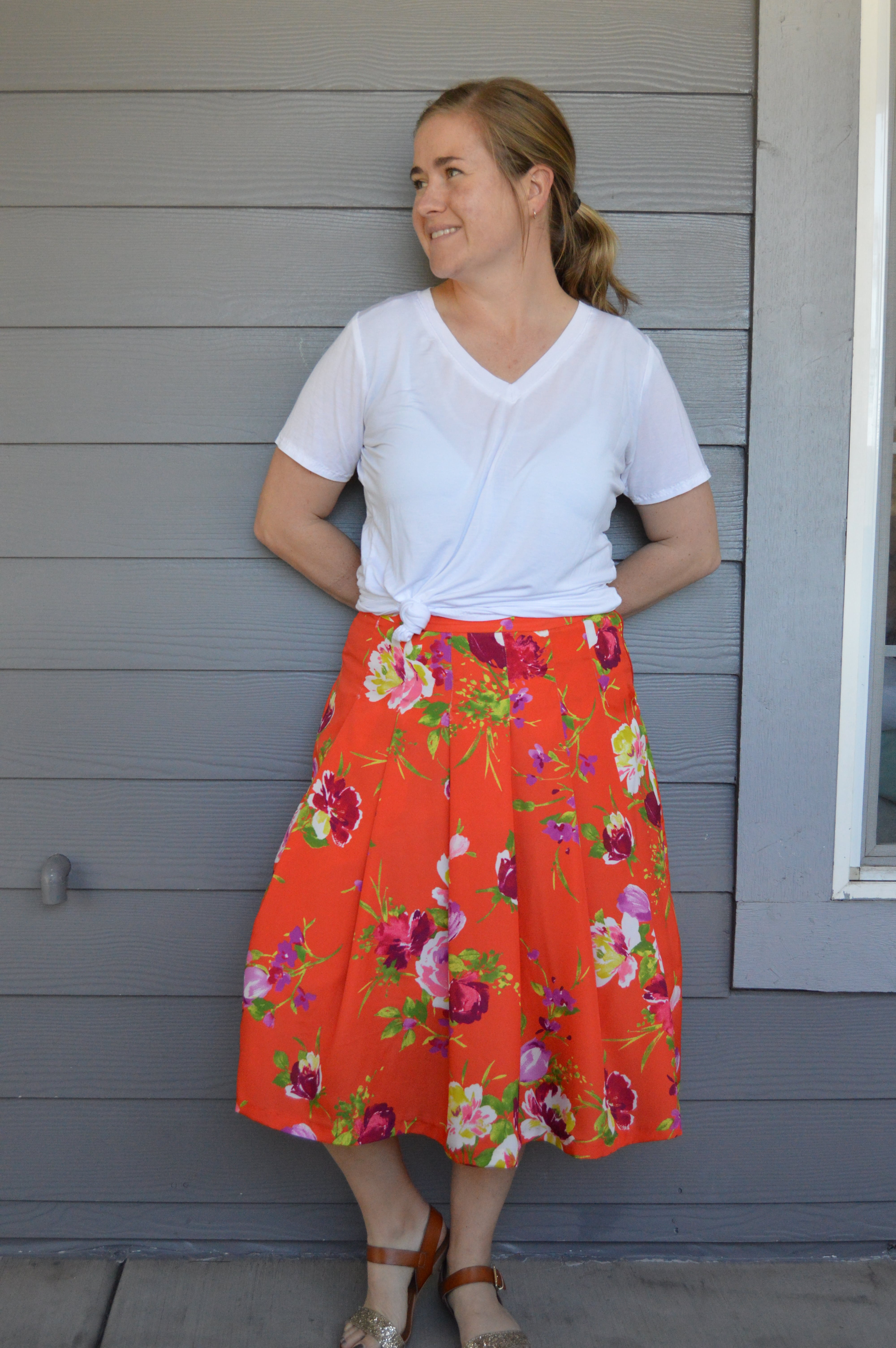 Anyway, in the end I still love the fabric but I’m just not sure this was the best way to show it off. As for now, I’ve hung the skirt in my closet. As I mentioned, if I style it as I did in these photos, I can wear it while hiding a lot of it’s most glaring issues. So my plan is to see if I ever reach for it once it gets a little warmer (the fabric is a bit too lightweight for the weather we’ve been having). If I do and I enjoy wearing it, I will tear into the waistband at least to fix the sway back issues (which shouldn’t require too much fuss). And if I don’t reach for it and/or don’t enjoy wearing it then I will also tear into the waistband but this time to dismantle it and turn it into something else. There’s not a ton of fabric to work with (I have very few scraps) but I’m sure I could think of something that would work.