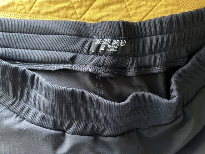 So I had my running-shorts fabric for the main body but I wanted ribbing for the pocket detail, waistband and cuffs for visual interest and to make them seem a bit more professional. Unfortunately, The Fabric Fairy didn’t have what I wanted for a rib knit so I only bought the one cut from them (I got a yard and a half). Once I had that fabric in hand, I took it to Joann to try to find an athletic rib knit to use with it. To me Joann’s is hit and miss, but it seems like their athletic knits are good quality. I circled the store trying to find what I wanted but couldn’t find it anywhere. I almost walked out empty handed but decided to go check the athletic section one more time and I’m glad I did! They had exactly what I was hoping for-a good quality athletic rib knit in black! I got half a yard.