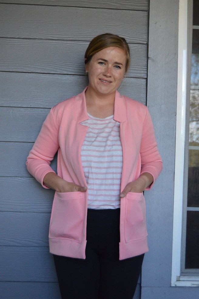 I’m glad I gave the Fulton sweater blazer a shot! It has something wonky going on every couple of inches but if I look at it from far away with squinty eyes, I really like what I see! If I come across some more bright pink scuba knit I might try making another!
