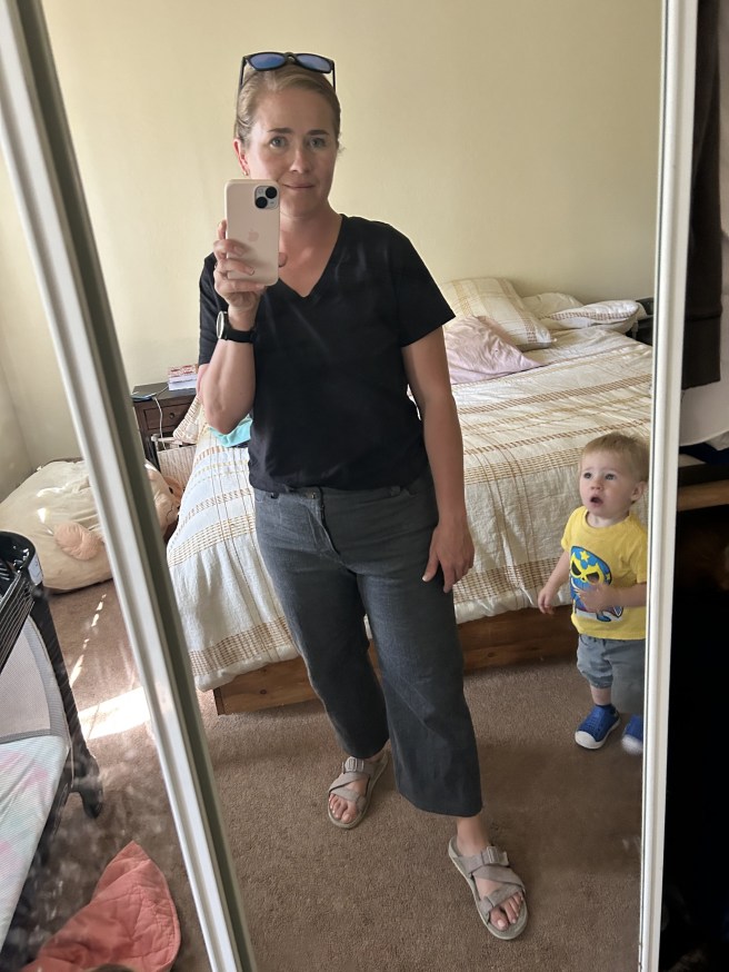 Some non-wearing things I did related to MMM were to do some mending, go through my closet, notice things I liked wearing vs. didn’t like wearing and try to figure out why, and just pay better attention to styles I’m attracted to. I did my blog and Pinterest perusing as normal, but tried to have a more mindful approach to things I liked and what suits me and my lifestyle. Since baby #3 I’ve struggled to figure out where my personal style sits and I think I made some really helpful realizations this month: