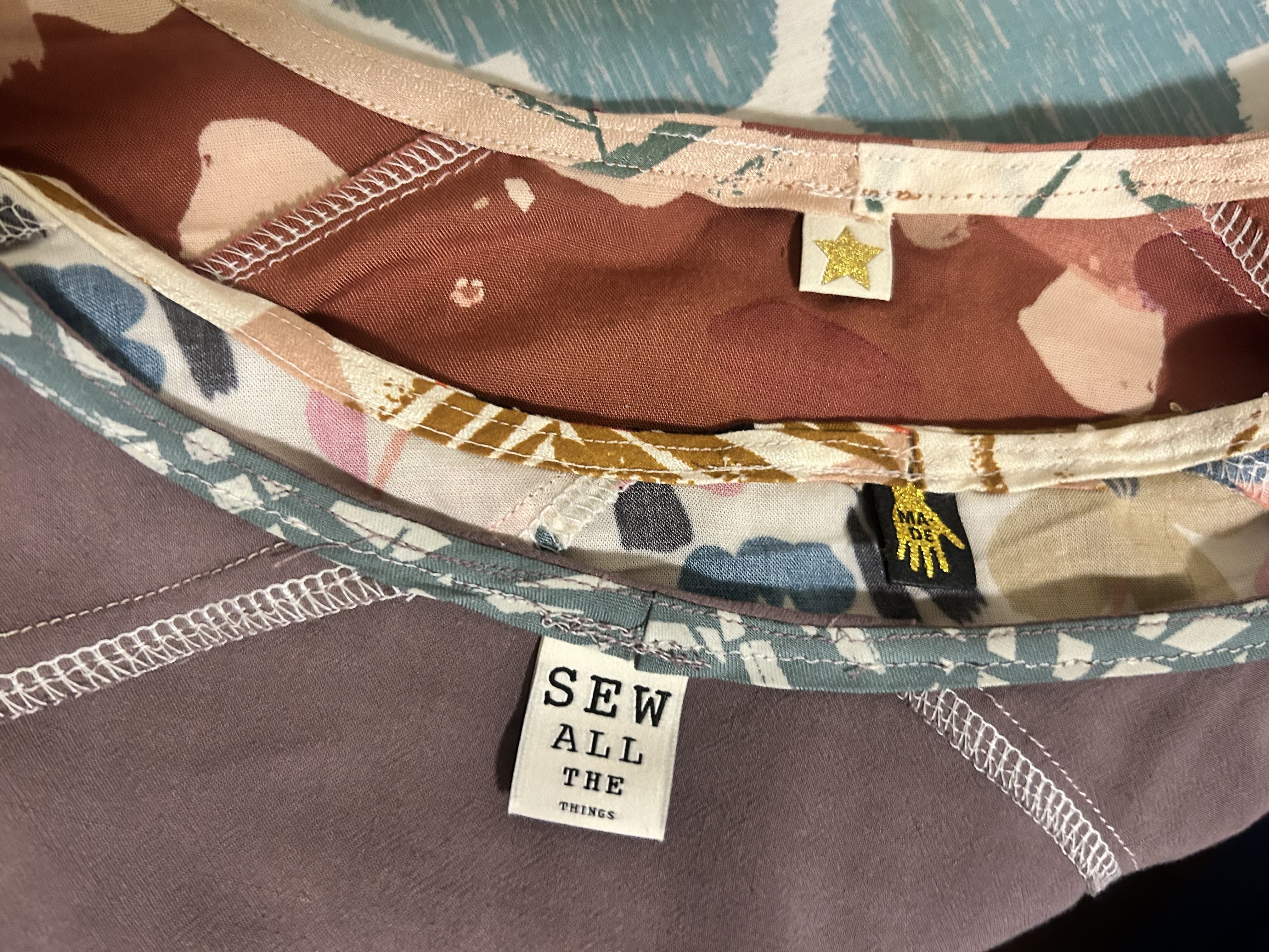 As far as sewing goes, the Cielo top is fairly simple. The most difficult thing for me is the binding on the neckline. The pattern comes with two options: a bias neckline or a facing neckline. I prefer the look of the bias neckline and so that’s what I did with all three versions here. There is a pattern piece to make your own bias tape but I have in my stash some Atelier Brunette rayon bias tape (again, from that same order!) that I have never once regretted buying. Since it’s rayon, it’s more lightweight than your regular cotton bias tapes and it’s not too pricey either. I bought 4 yards total. I don’t use it all the time but I haven’t had to restock yet!