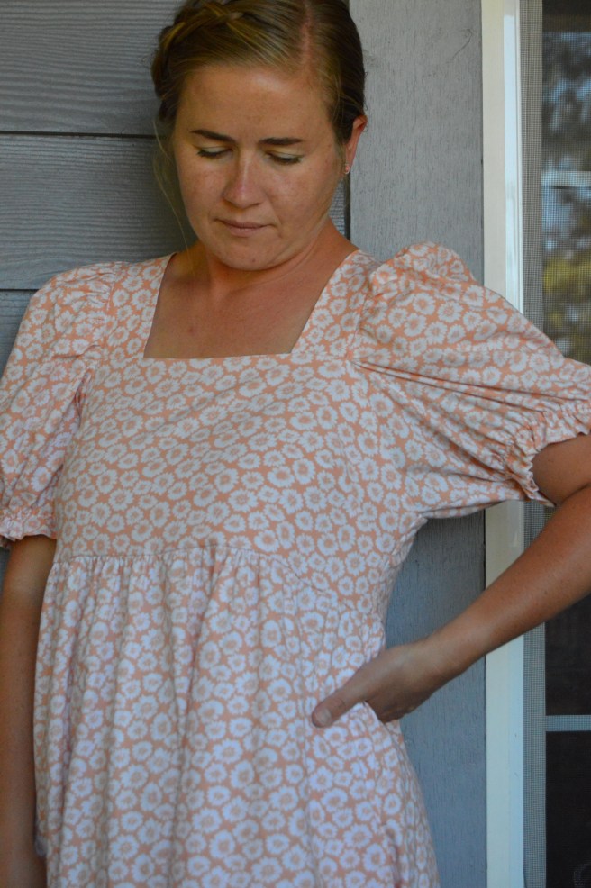 As I’m sure you’ve notice by this point, I wasn’t really paying the Mindy dress or Mindy instructions any mind, but just kind of doing my own thing. So I added the ruffle to the bottom of the skirt and made the sleeves poufy princess sleeves. I honestly don’t know that those details are the best. I thought about removing the bottom ruffle but in the end decided that it being there wasn’t a big deal. I can always take it off later if I want!