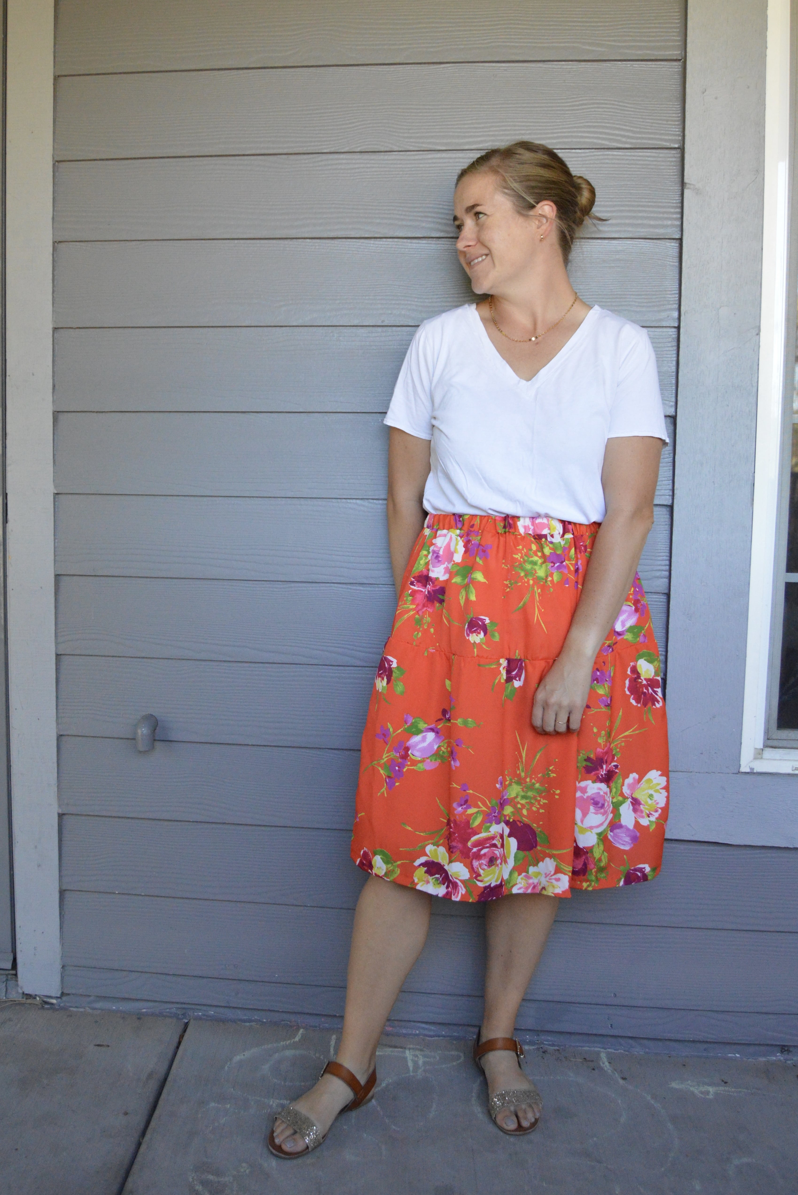 I started with a skirt and ended with a skirt so there was no wild transformation. However, I do think this is an improvement! I absolutely hated the idea of letting this beautiful fabric go to waste so I’m glad I was able to give it another chance. This new skirt feels much more wearable and does a better job at highlighting the fabric. I’m glad I took the time to change it. Of course, weather-wise, I might be out of opportunities to wear this this year, but hopefully I’ll have chances yet to wear it on warm weather days to come.