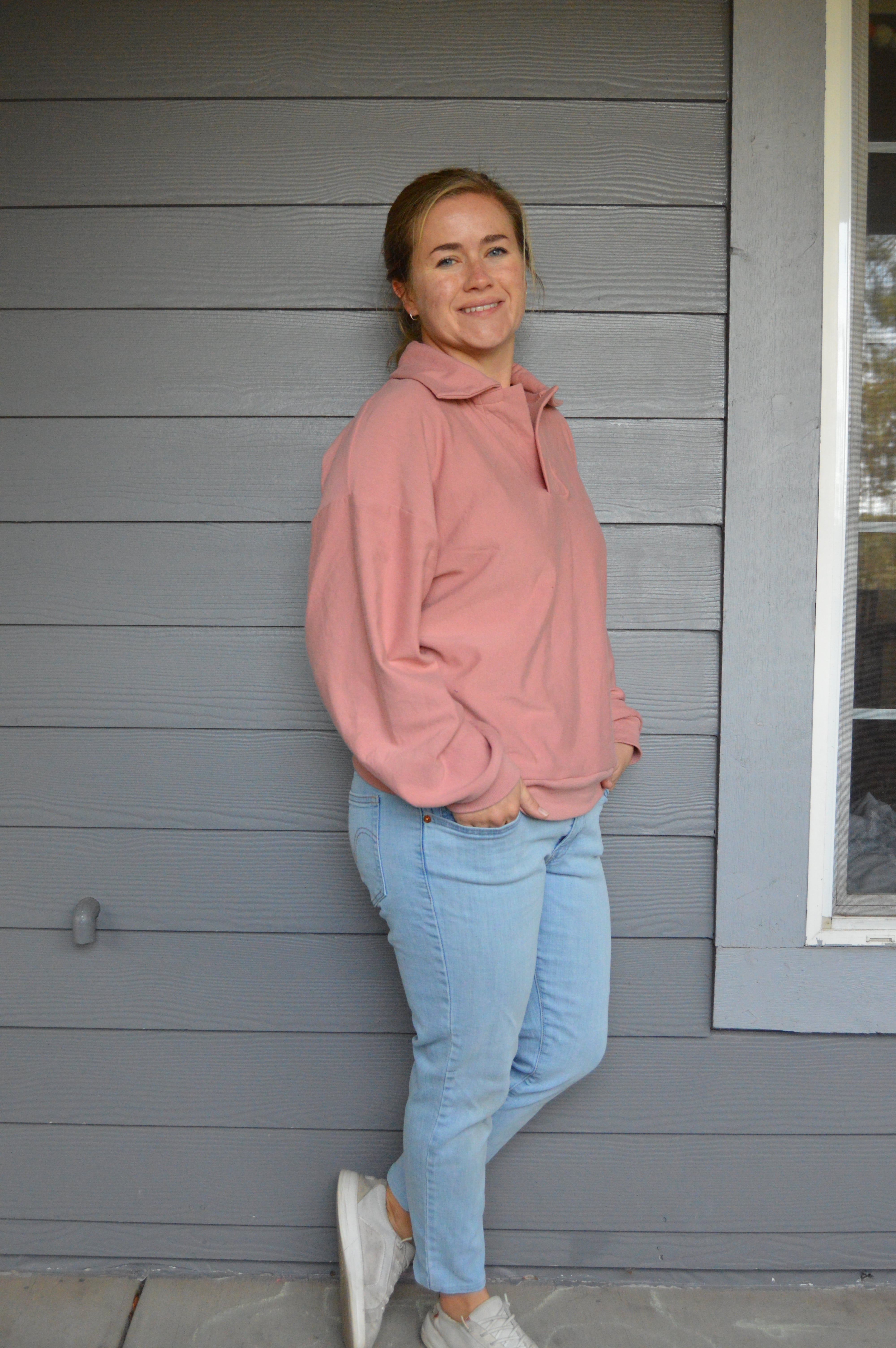 I was going for cheap, so I just bought the single size PDF of the pattern, which comes with the size above it and the size below it. Honestly, you receive separate files for each size, so it’s not really conducive to blending sizes. It’s such an oversized fit though that I didn’t bother to worry about it and just made a straight size 10, no modifications.