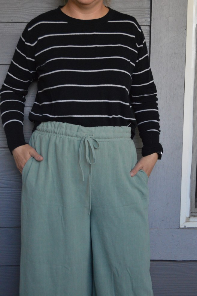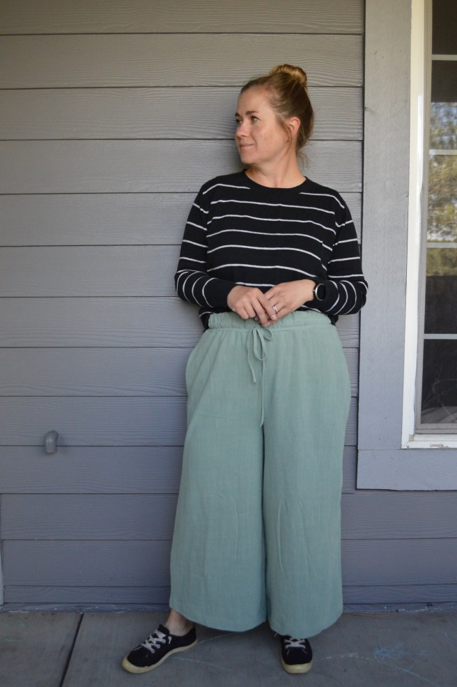 Would I make these again?: I would! Although I think I might try the wide leg Free Range Slacks next for a wide leg pants pattern that’s a bit more mild