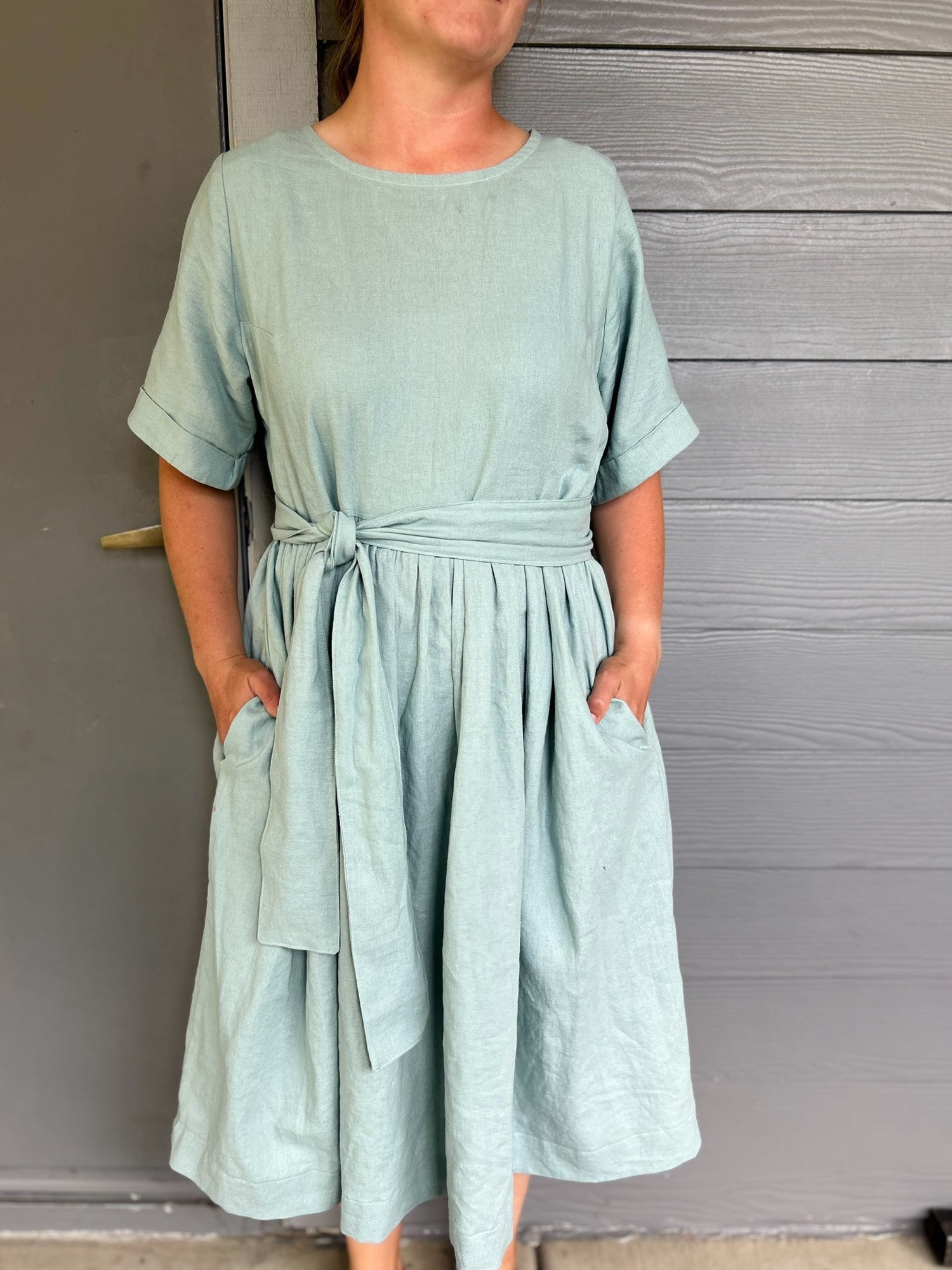 I am not a linen expert by any means, but I’ve been really happy the few times I’ve bought Brussels washer linen. It’s solid quality, with a good weave and a medium weight. It’s very versatile, not to mention reasonably priced (about $14/yd). I love the texture of linen. It add so much character to a garment.