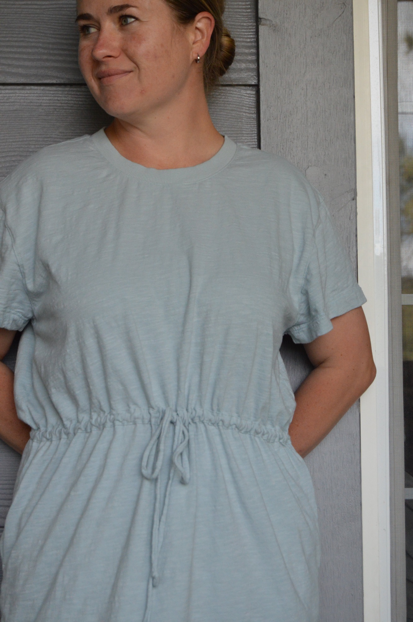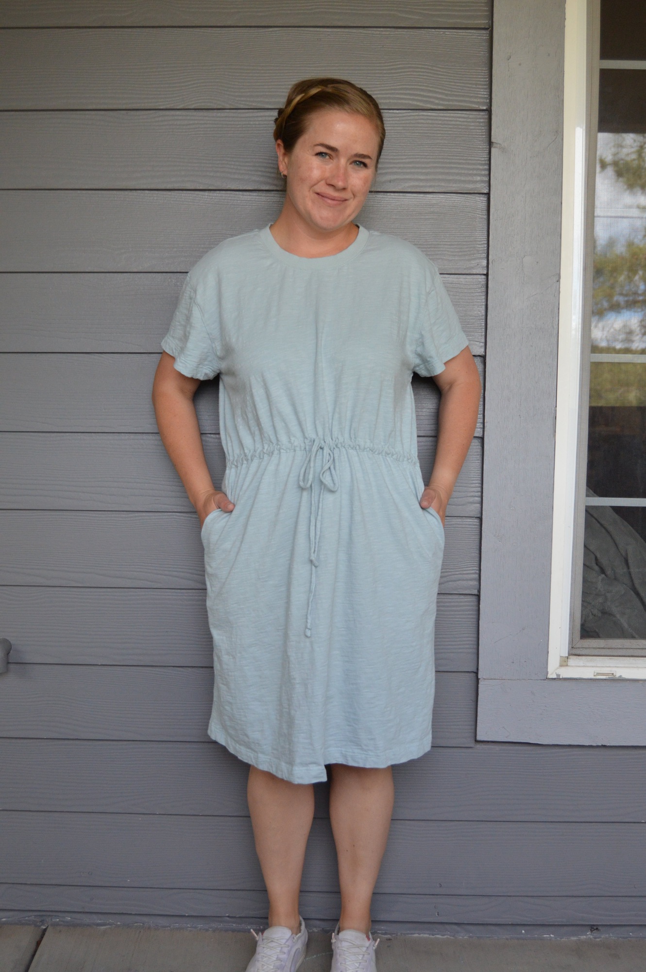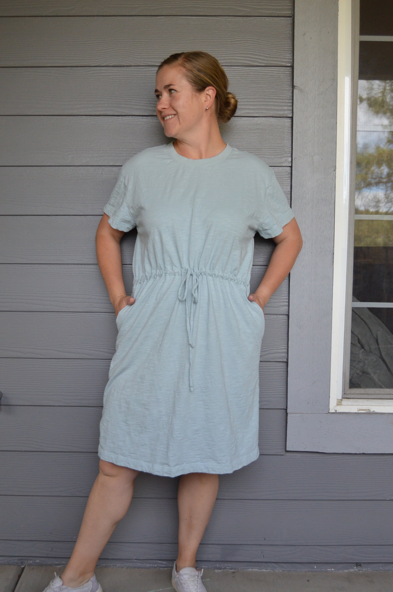 For a few months, I kept turning to my closet and thinking, “Dang, I wish I had a casual t-shirt dress.” I have a fair amount of dresses but they pretty much all sit squarely in the middle of the scale that goes from casual to fancy–not nice enough to wear to a formal event but too nice to wear for running errands on a random Tuesday. I wanted to fix this!