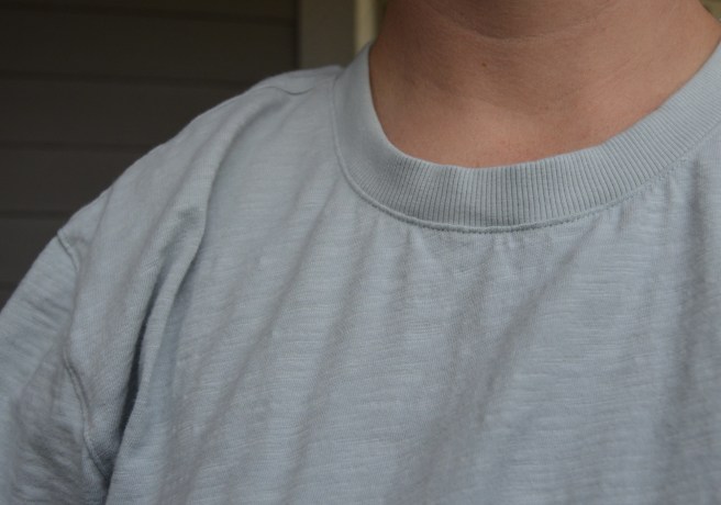 As far as adjusting the pattern, I did 2 other things. First, I did a 3/8ths inch forward shoulder adjustment (FSA). Maybe I’ve talked about this before but this has been a huge game changer as far as my t-shirt making goes. I had all but resigned myself to only wearing v-necks because most crew neck t-shirts ride too close to my neck. The FSA shifts everything down where it’s meant to be. With it, I no longer feel like I’m in a chokehold! And it’s an easy adjustment to make (I follow the instructions found on Melly Sews).