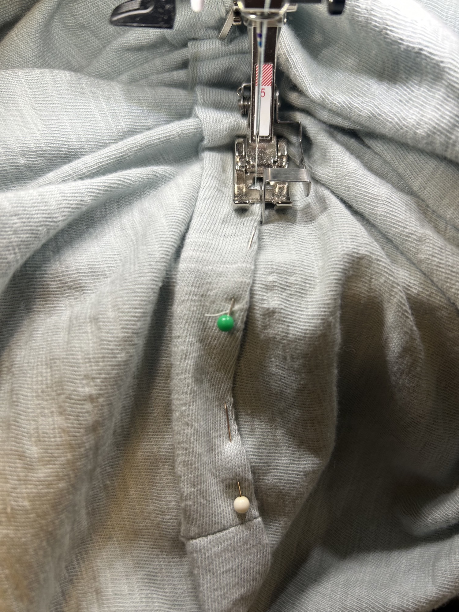 For my fabric, I used the slub jersey from Isee Fabric. I looooove their slub jersey. It’s beautiful. It’s 100% cotton, has very little stretch, and a lovely texture. Obviously, it has to be paired with the appropriate project (I once made a Union St. Tee with some and that was NOT the appropriate project) but with the right pattern, it’s amazing. The only frustration with ordering the slub jersey is that I like ordering ribbing to match, and the colors between the jersey and ribbing aren’t always in sync. I usually have to go back and forth between pages and check names several times to find matches. This color is “Sea.” As with most their colors, it’s more subtle and muted, but still really pretty (and somehow exactly matches the color of the Cielo hacked dress I made recently).