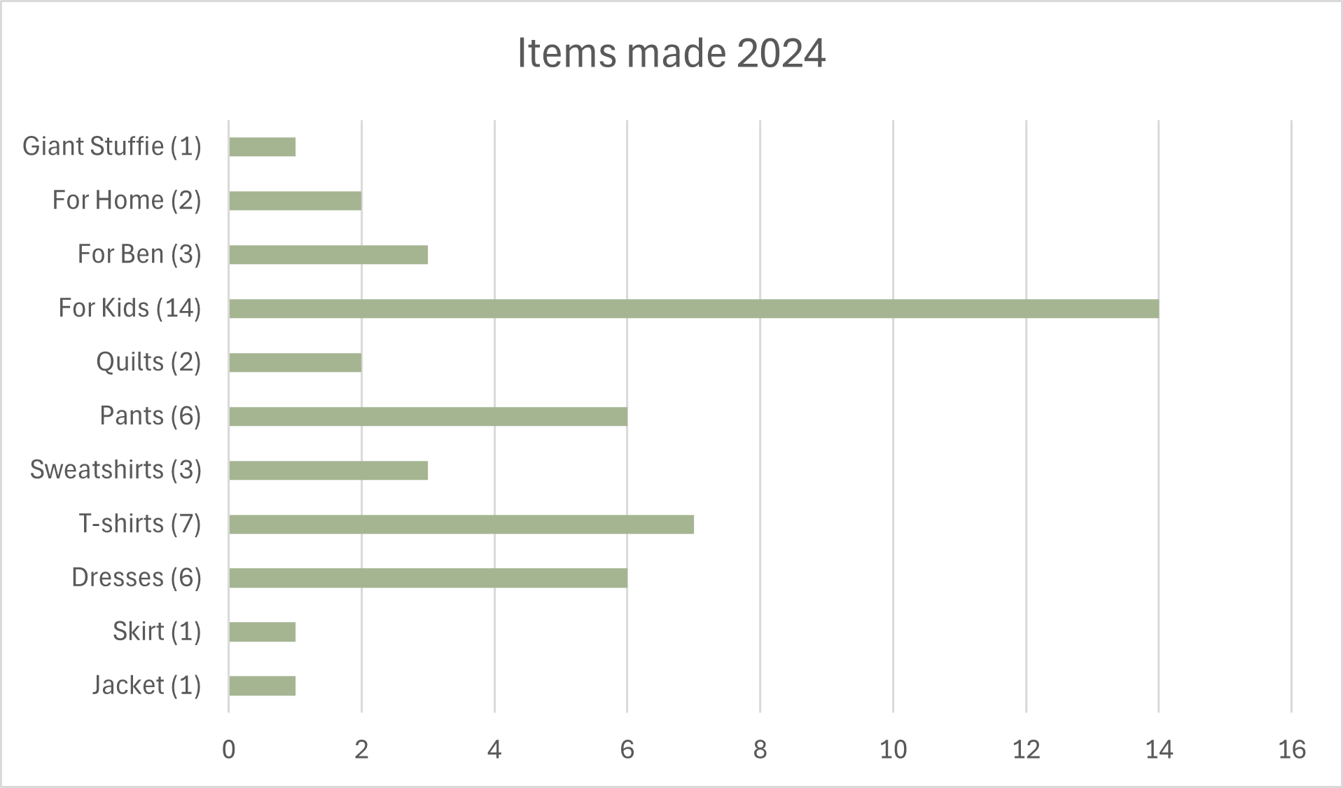 I was surprised by a few things. I was surprised by how much I had spent/sewn for my kids and how little I had spent/sewn for my husband (sorry, Ben!). I didn’t expect my notions cost to be so high, but I guess the $5 here and there on elastic and interfacing add up! I was glad to note that over a quarter of the fabric I bought for myself was purchased with gift cards. Another win was that I made 2 quilts this year, but one was made entirely from stash fabric. I’m also always grateful that my mom quilts my quilts because that is another expense I have the pleasure of avoiding.