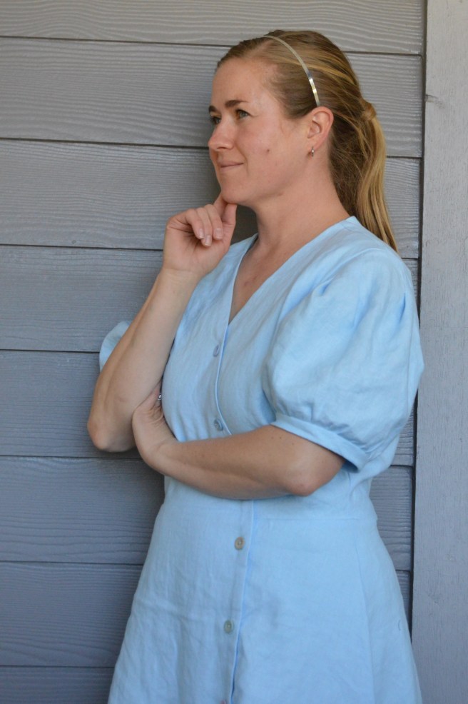 I also think it’s official: I don’t like these sleeves at all. I took an inch off the length and I could take off more but that wouldn’t help with the real issue which is the volume. Don’t get me wrong, I love a good puffy sleeve but I think the dress would look so much more polished if the sleeve had a lower profile.