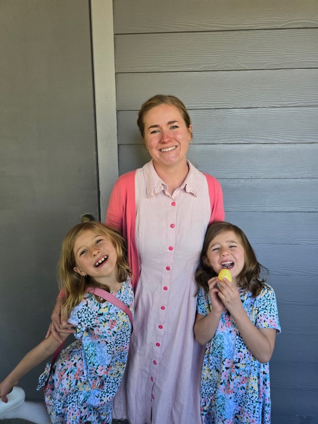 Anyway, I love handmade elements on holidays when it’s possible and was glad I was able to (barely) make it happen this year. You can see previous Easter outfits here (2023), here (2019), and here (2017-the very first when my oldest was just a baby)!