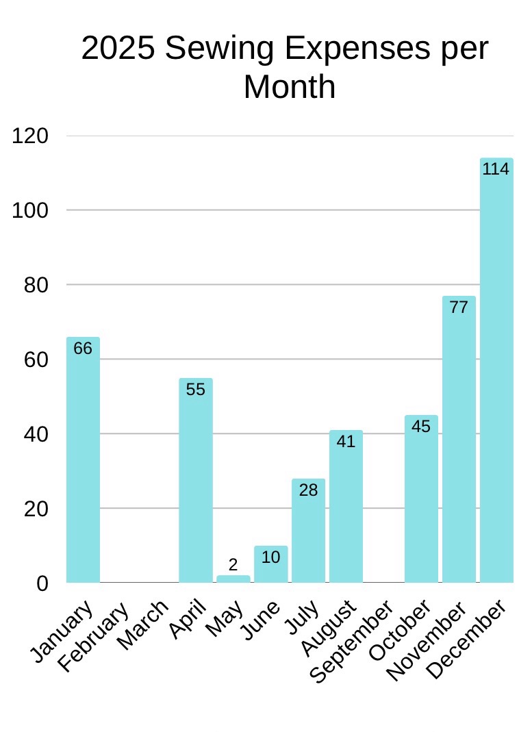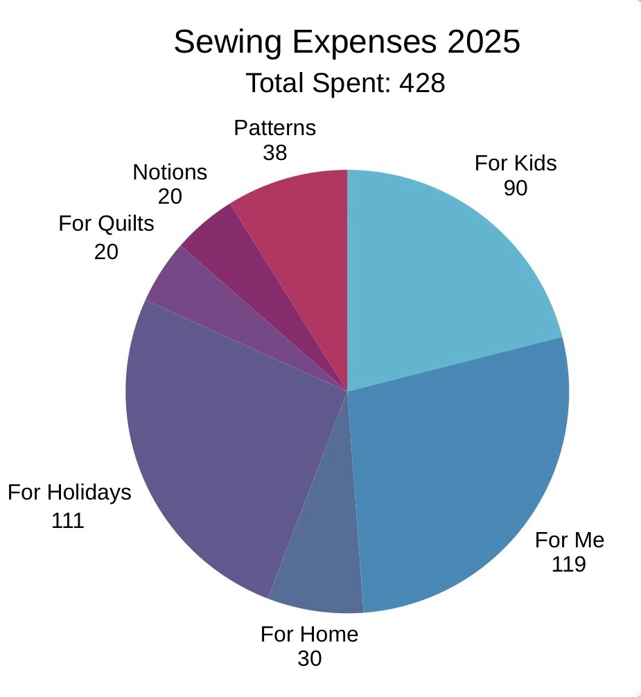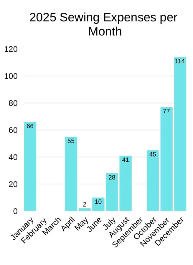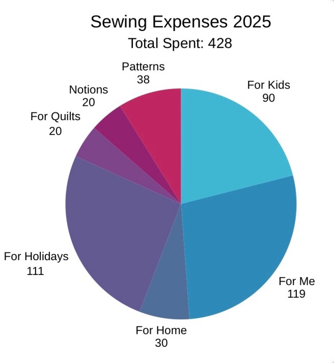 In 2024, my sewing expenses totaled $958. In 2025 those expenses were less than half at $428.