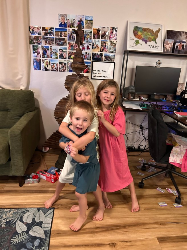 A very distracting picture of our 2025 “Christmas” pajamas: