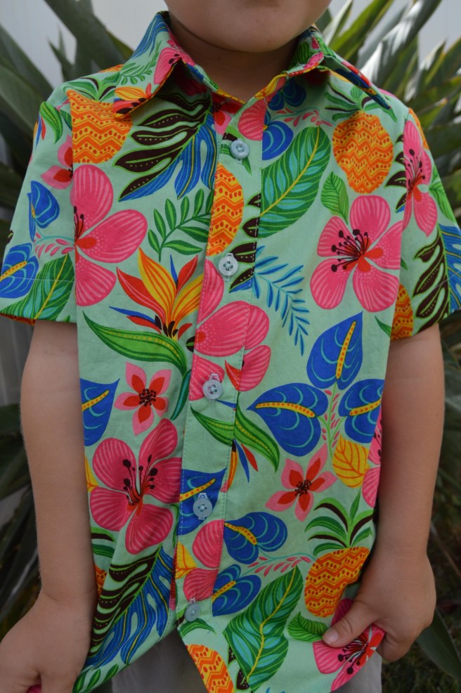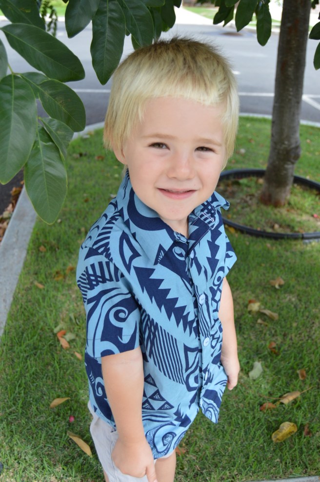 Unfortunately, my son gets the short end of the stick when it comes to me sewing things for him. Aside from Christmas jammies, I pretty much don’t! When we moved, he didn’t have any nicer button-ups. Aloha shirts are appropriate for literally every occasion here in Hawaii, so I figured having a couple wouldn’t go amiss.